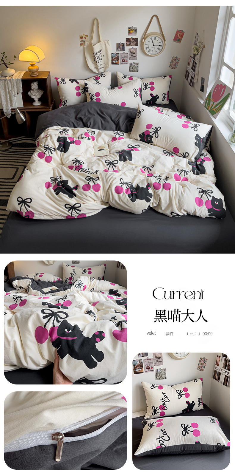 当前位置: 91家纺网 > 商品网购 > 床品套件 > 四件套 > 水洗棉四件套 > 梦卓家纺 2025新款亲肤超柔印花水洗棉四件套 黑喵大人