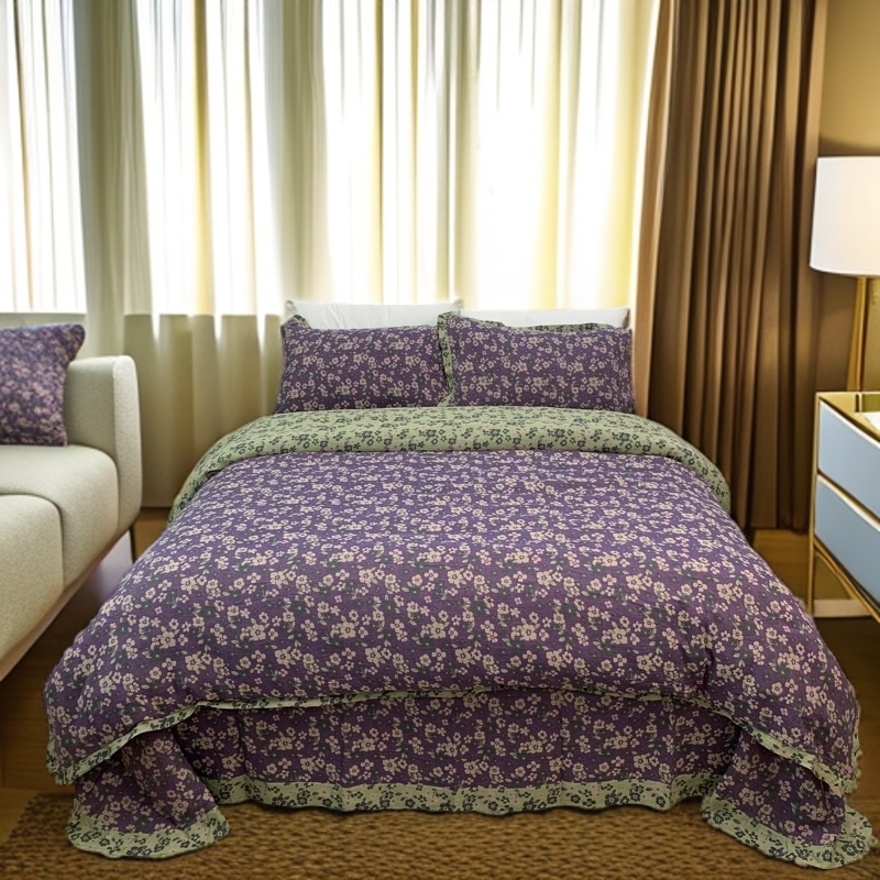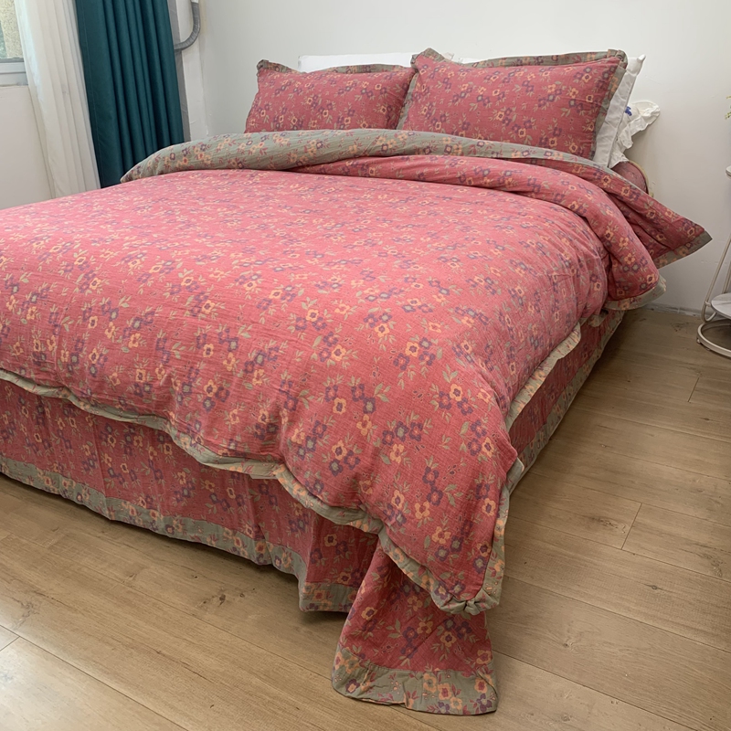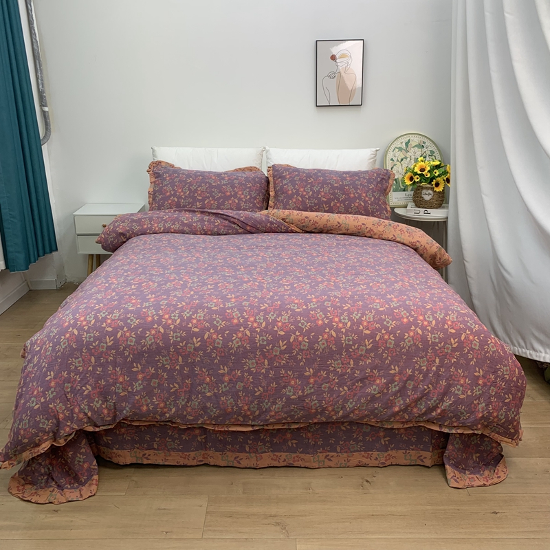商品名称:(总)鲁爱家纺供货 2025新款全棉色织双层纱花边款四件套