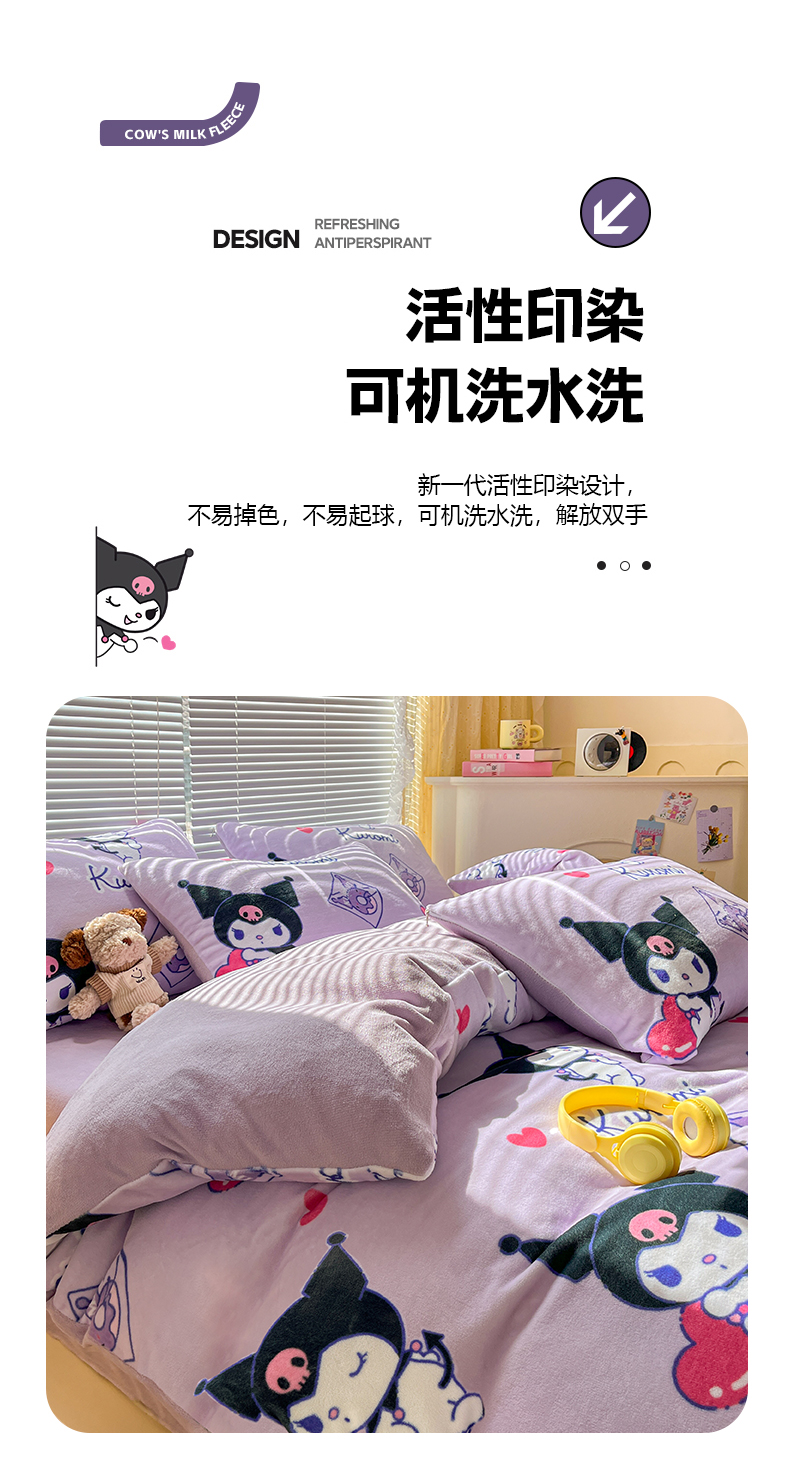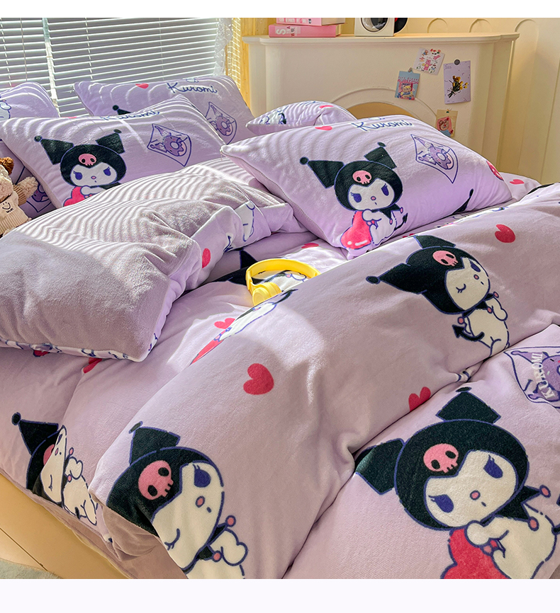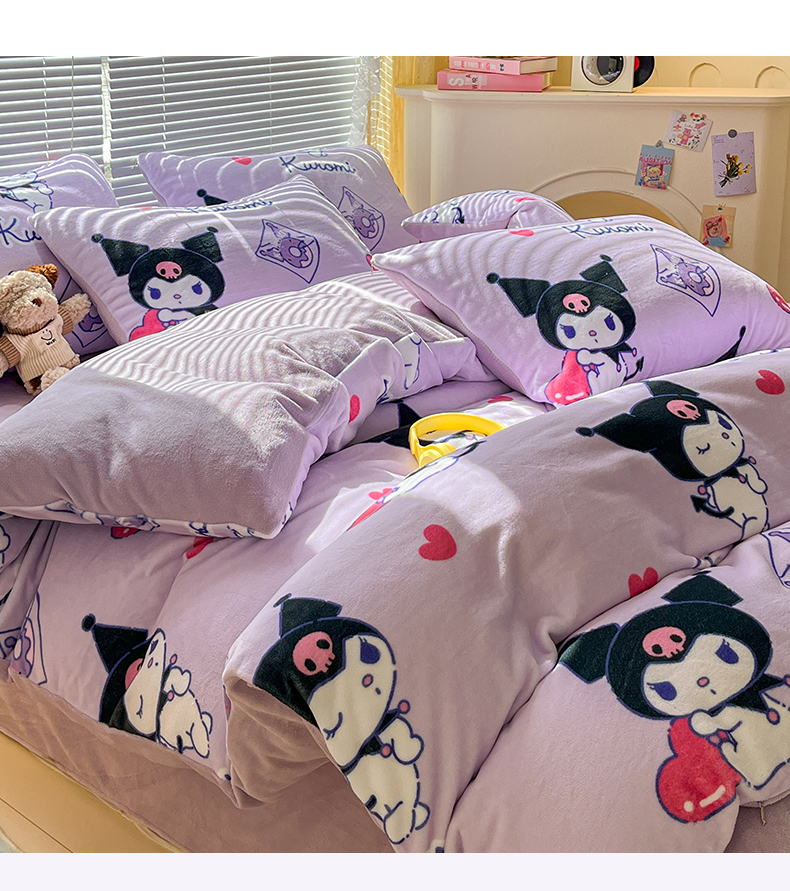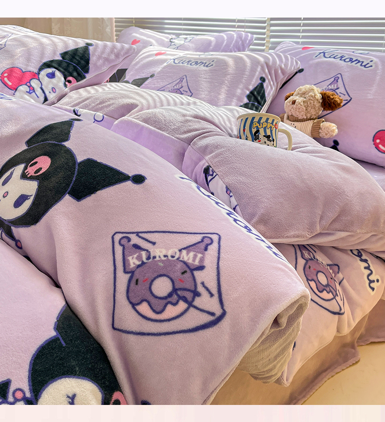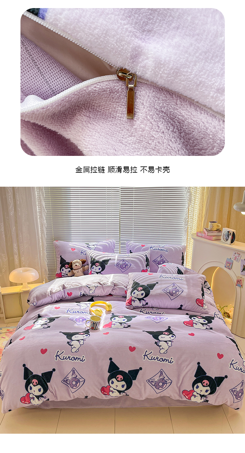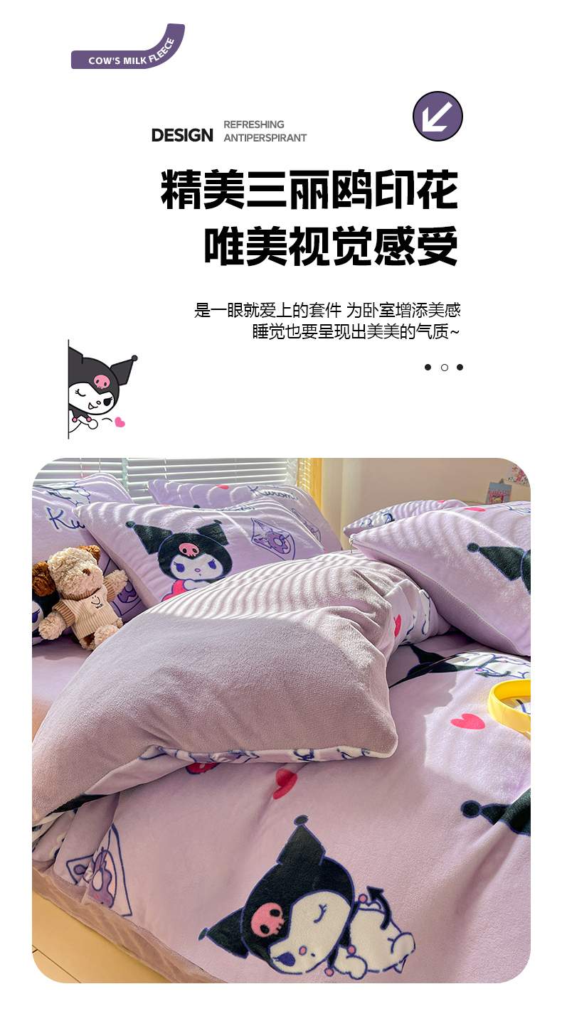 当前位置: 91家纺网 > 商品网购 > 床品套件 > 四件套 > 牛奶绒四件套 > 美澳家纺 2024新款200克三丽鸥系列卡通印花牛奶绒单被套三四件套 巴库库洛米