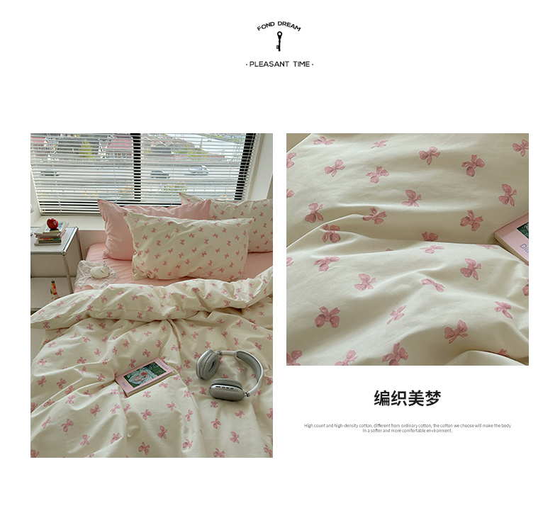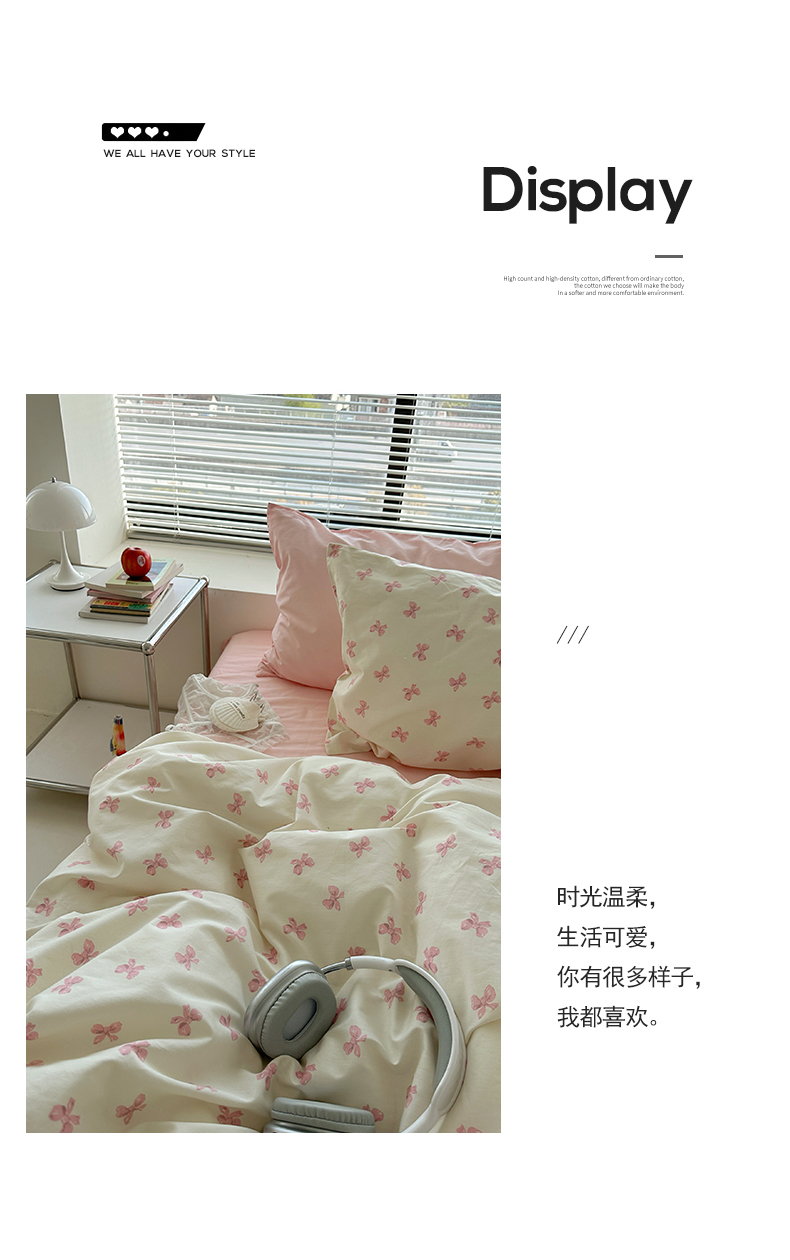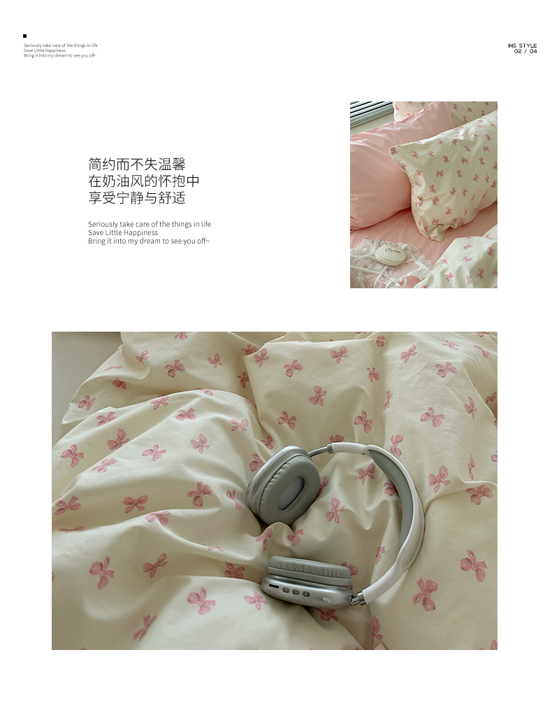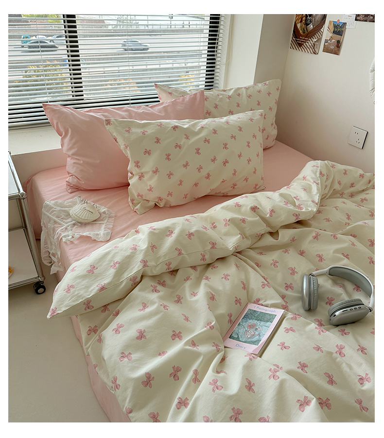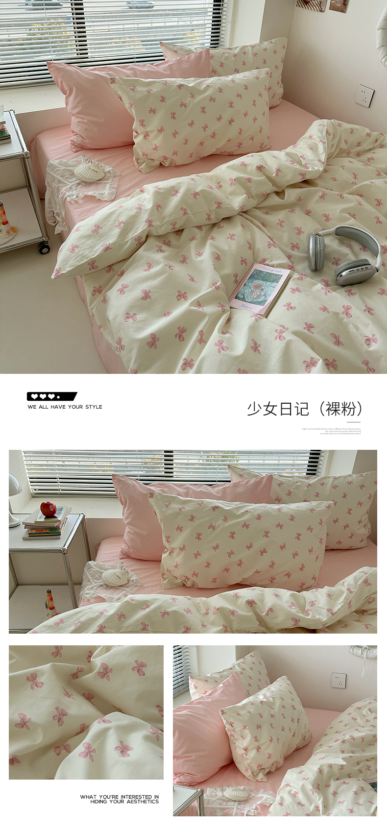 商品名称:尺素 2024韩国ins风少女粉被套纯棉卡通四件套小清新蝴蝶结被套240*250床单学生宿舍三件套 少女日记(裸粉)