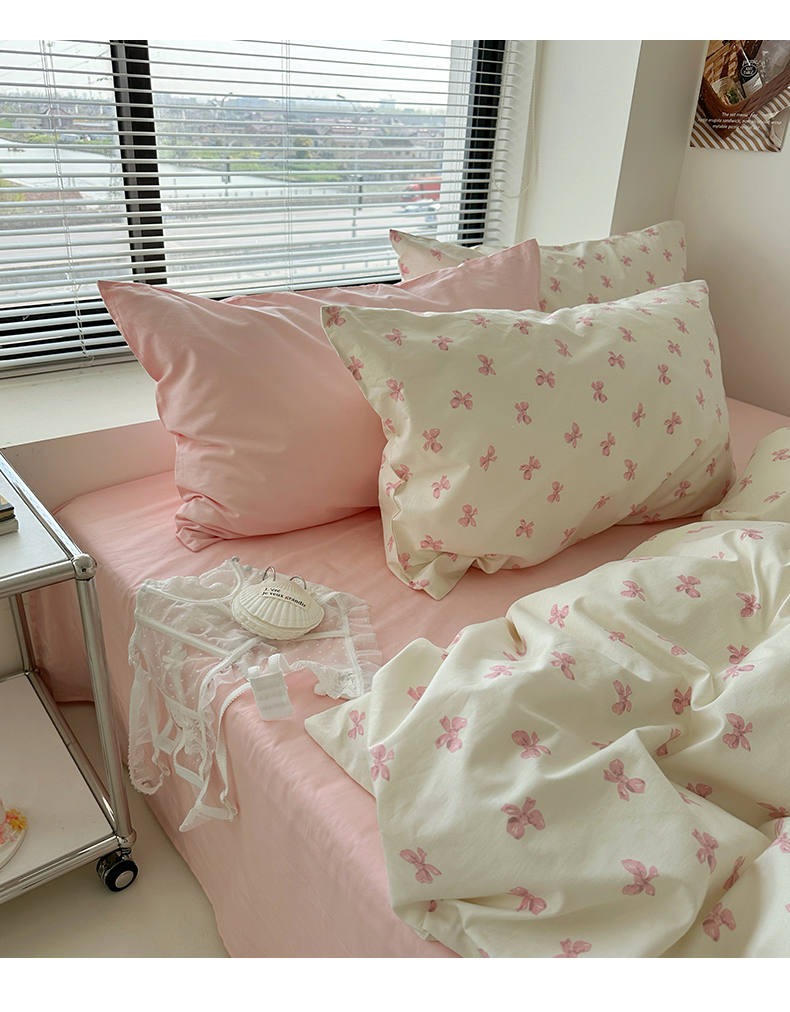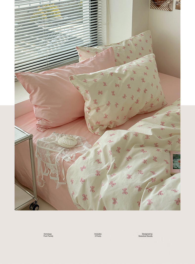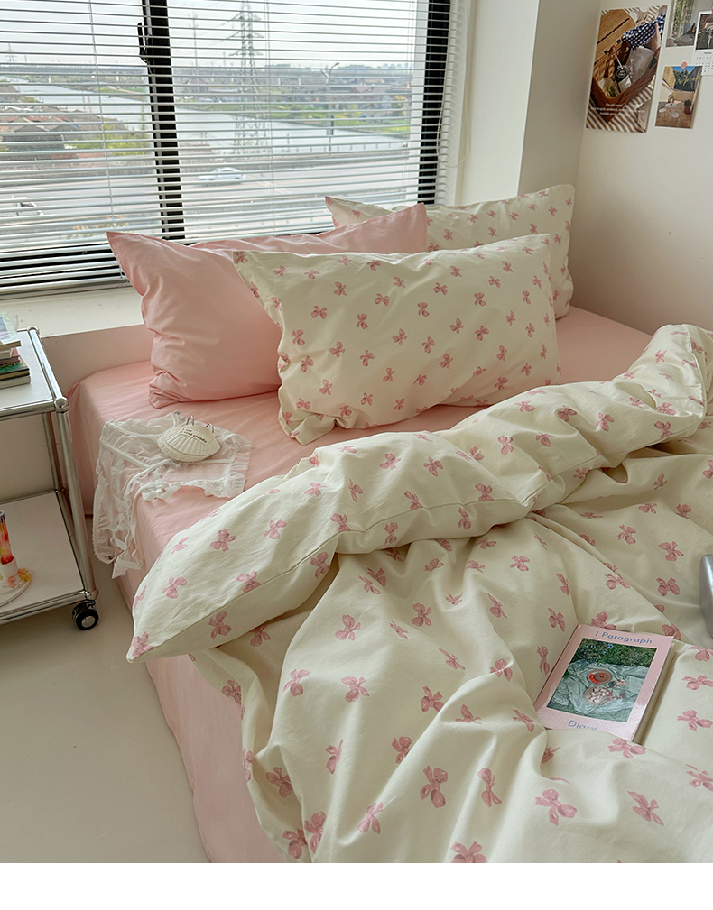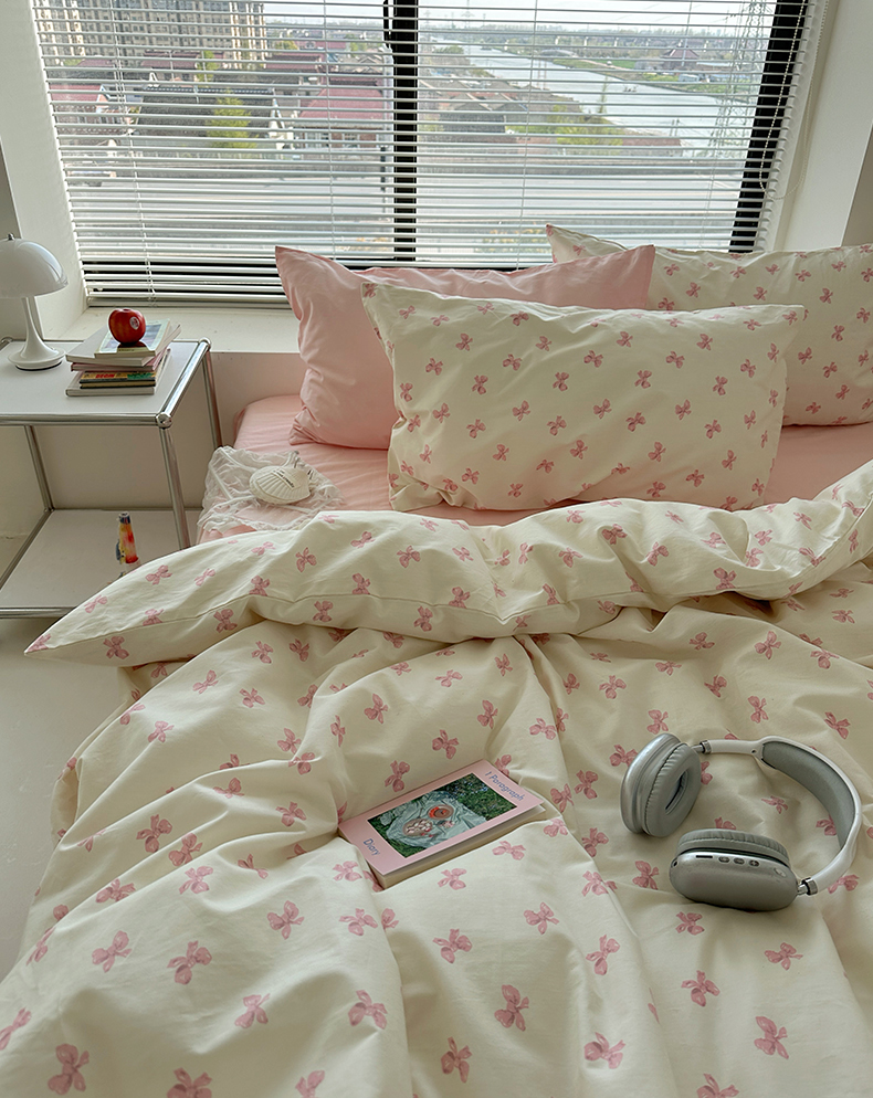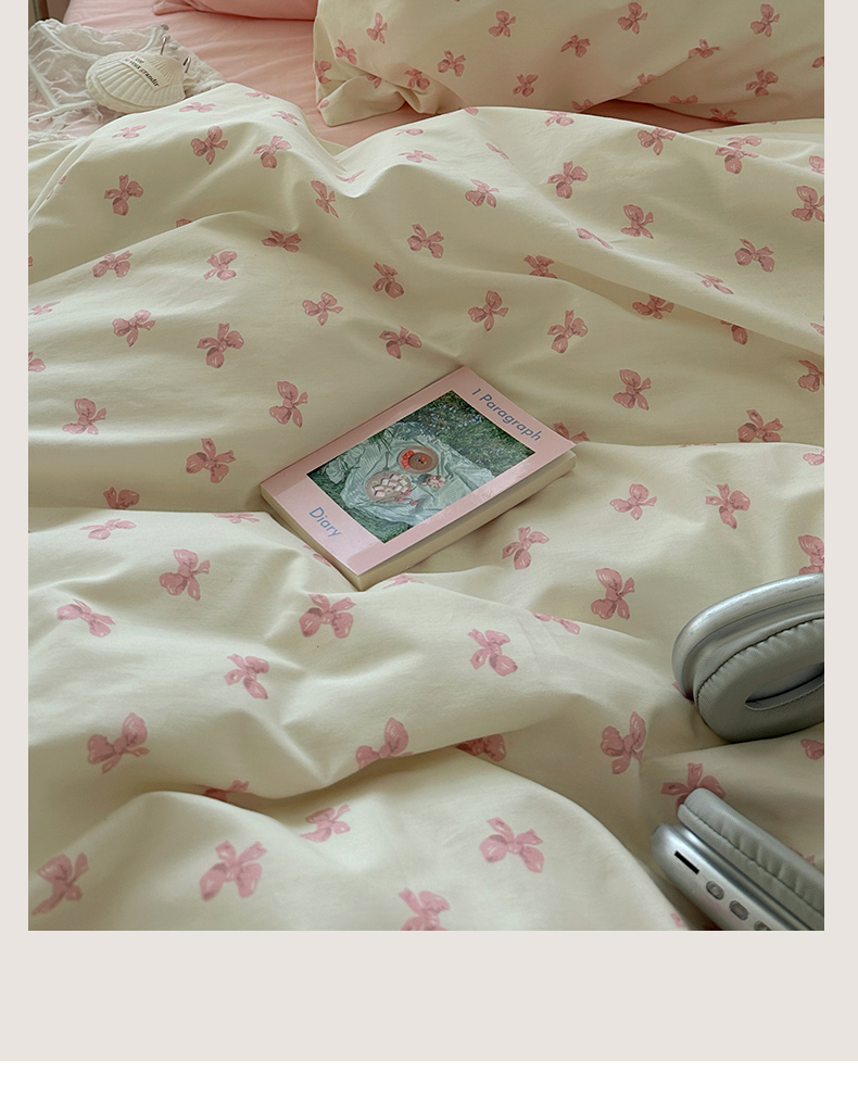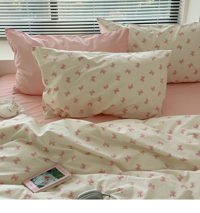 商品名称:尺素 2024韩国ins风少女粉被套纯棉卡通四件套小清新蝴蝶结被套240*250床单学生宿舍三件套 少女日记(裸粉)
