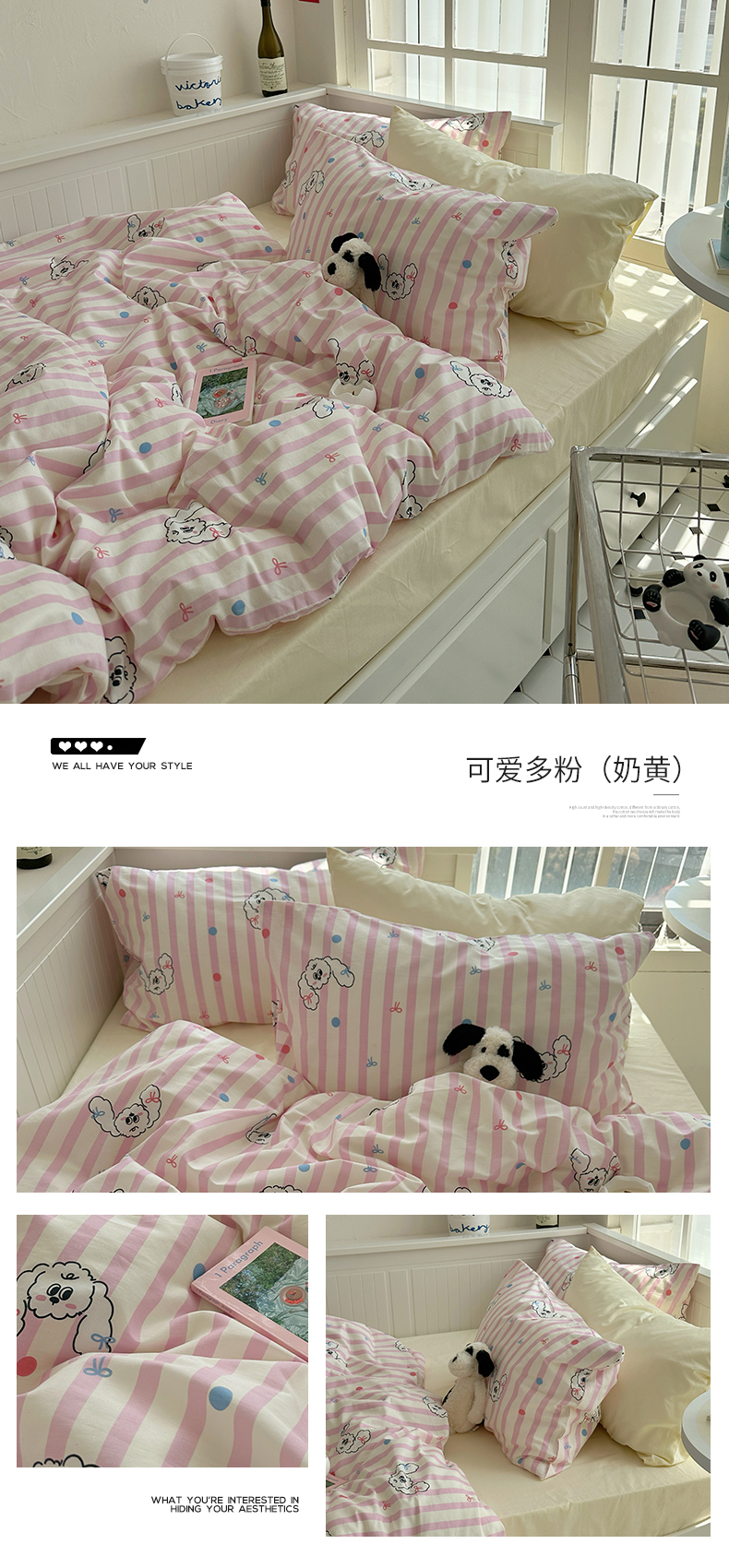 (总)尺素 2025新款纯棉卡通ins风四件套可爱少女风全棉被套纯色1.8床笠加大床单学生1.2三件套,告白熊--浅蓝,格调粉--奶黄,格调粉--桃粉,蓝白情书--浅蓝,清梦--冰沙绿,清梦--浅黄,小熊软糖--焦糖