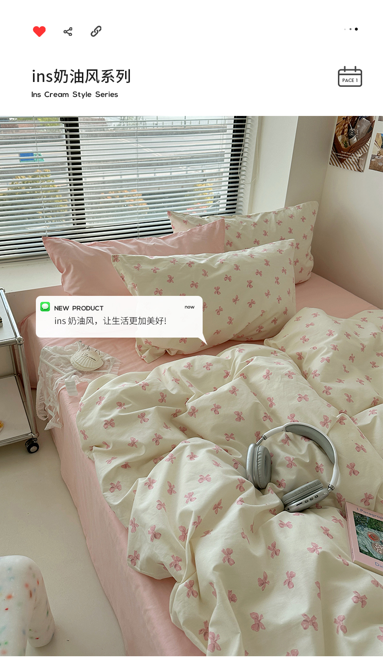 (总)尺素 2025新款田园小清新纯棉四件套出口韩国ins博主风全棉被套纯色加大床单1.8床笠印花枕套学生宿舍三件套,春不晚 桃粉,花似锦 奶白,紫鸢千夏紫