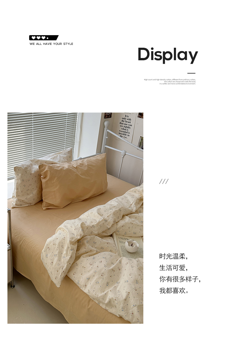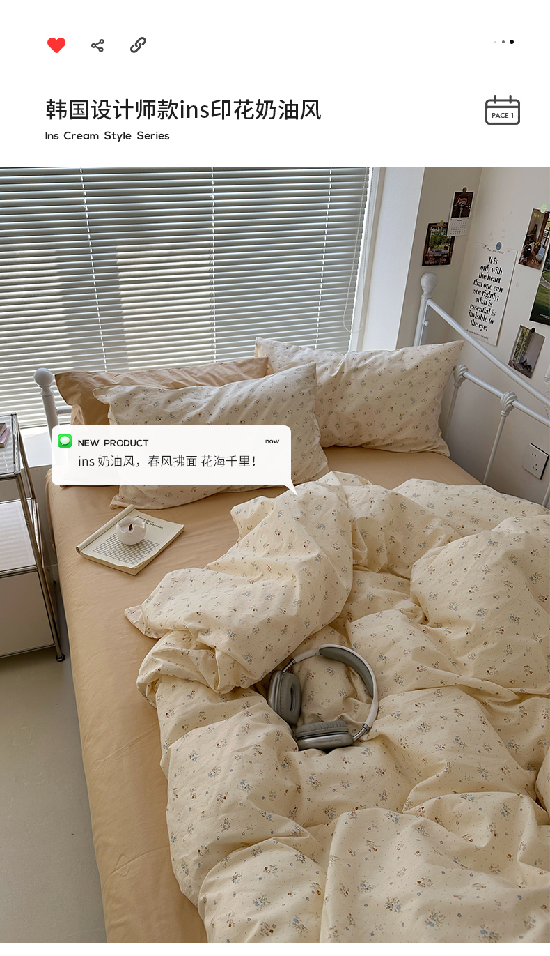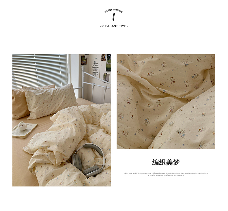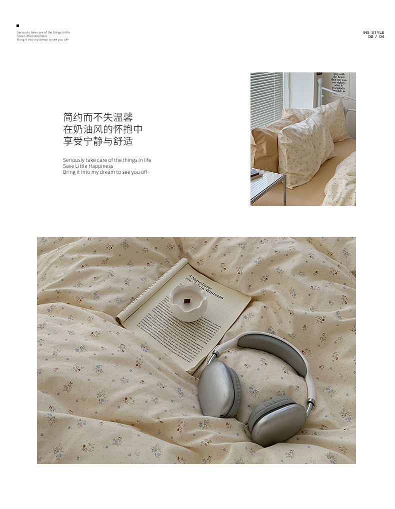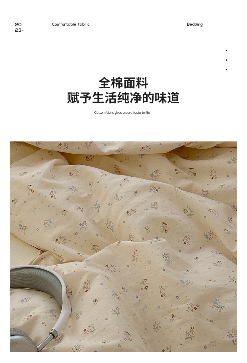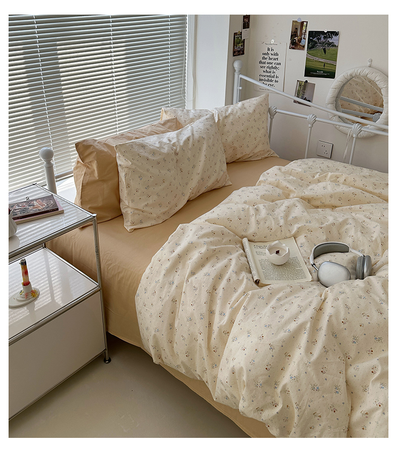 当前位置: 91家纺网 > 商品网购 > 床品套件 > 四件套 > 全棉普通四件套 > 尺素 2024新款韩国ins风全棉印花四件套田园花卉双人碎花被套学生宿舍1.2三件套纯色加大床单1.8床笠 露华浓(浅驼)