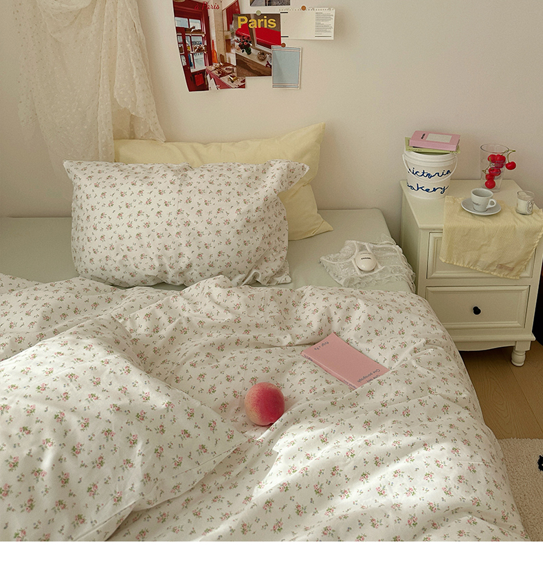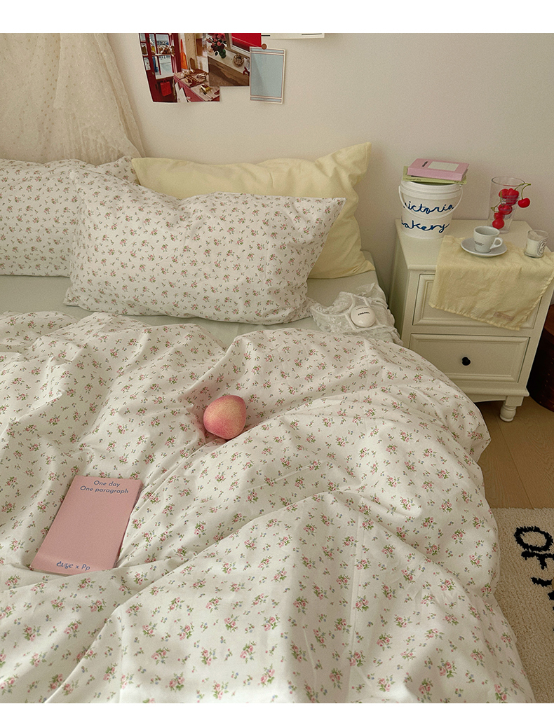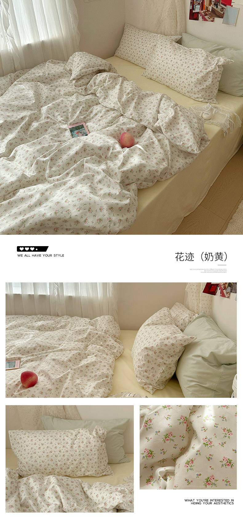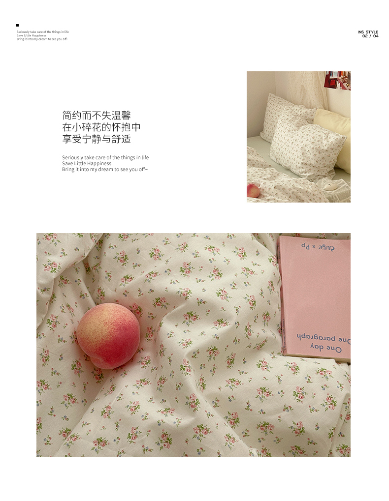 当前位置: 91家纺网 > 商品网购 > 床品套件 > 四件套 > 全棉普通四件套 > 尺素 2024新款韩国纯棉ins风小碎花四件套花卉田园被套纯色加大床单1.8床笠混搭风纯色印花枕套 花迹(冰沙绿)