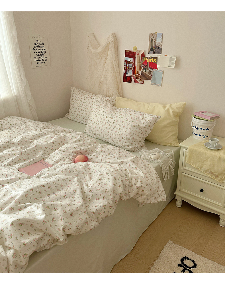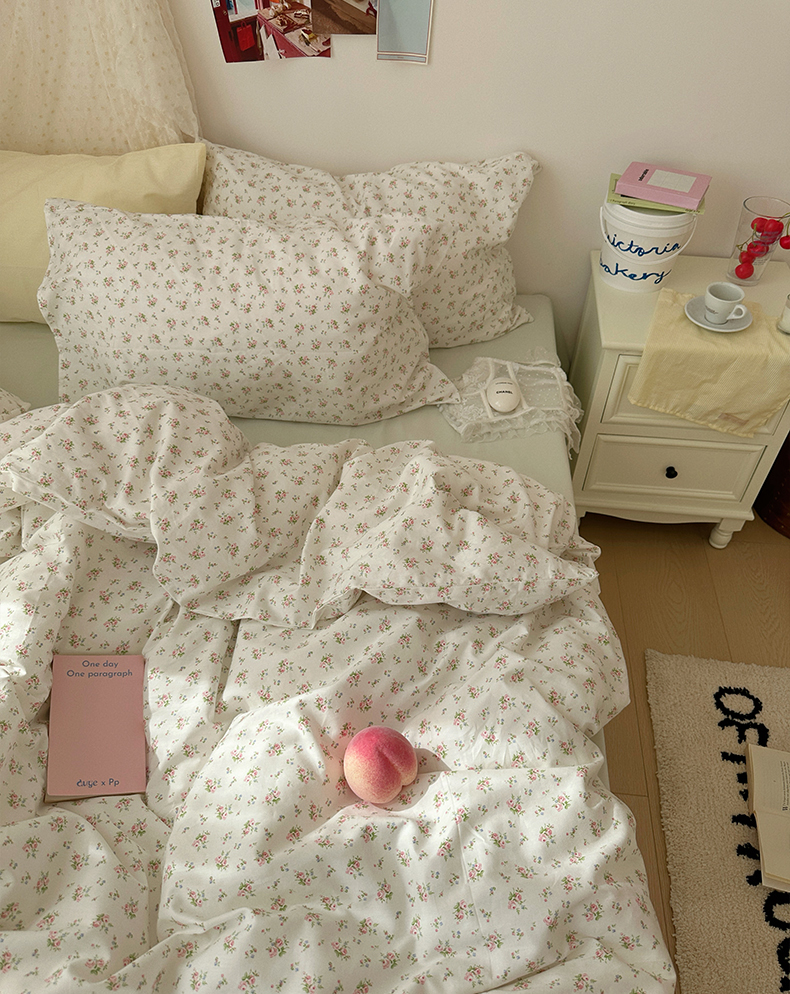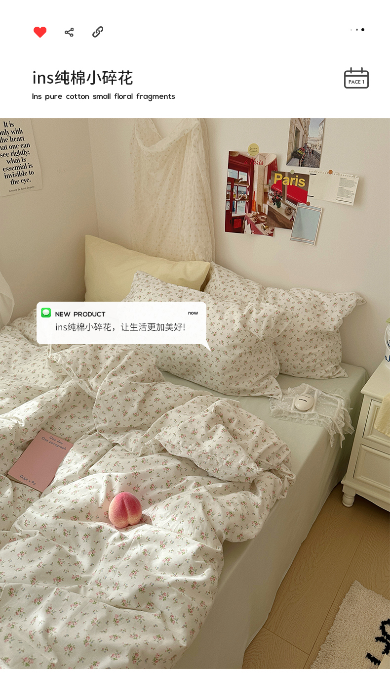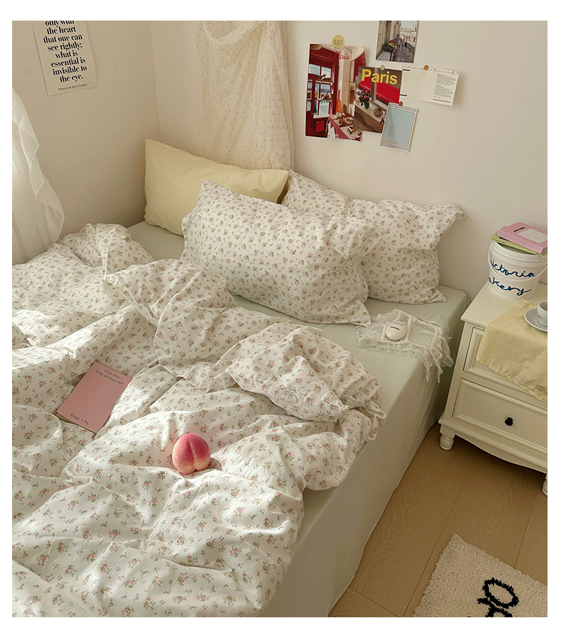当前位置: 91家纺网 > 商品网购 > 床品套件 > 四件套 > 全棉普通四件套 > 尺素 2024新款韩国纯棉ins风小碎花四件套花卉田园被套纯色加大床单1.8床笠混搭风纯色印花枕套 花迹(冰沙绿)