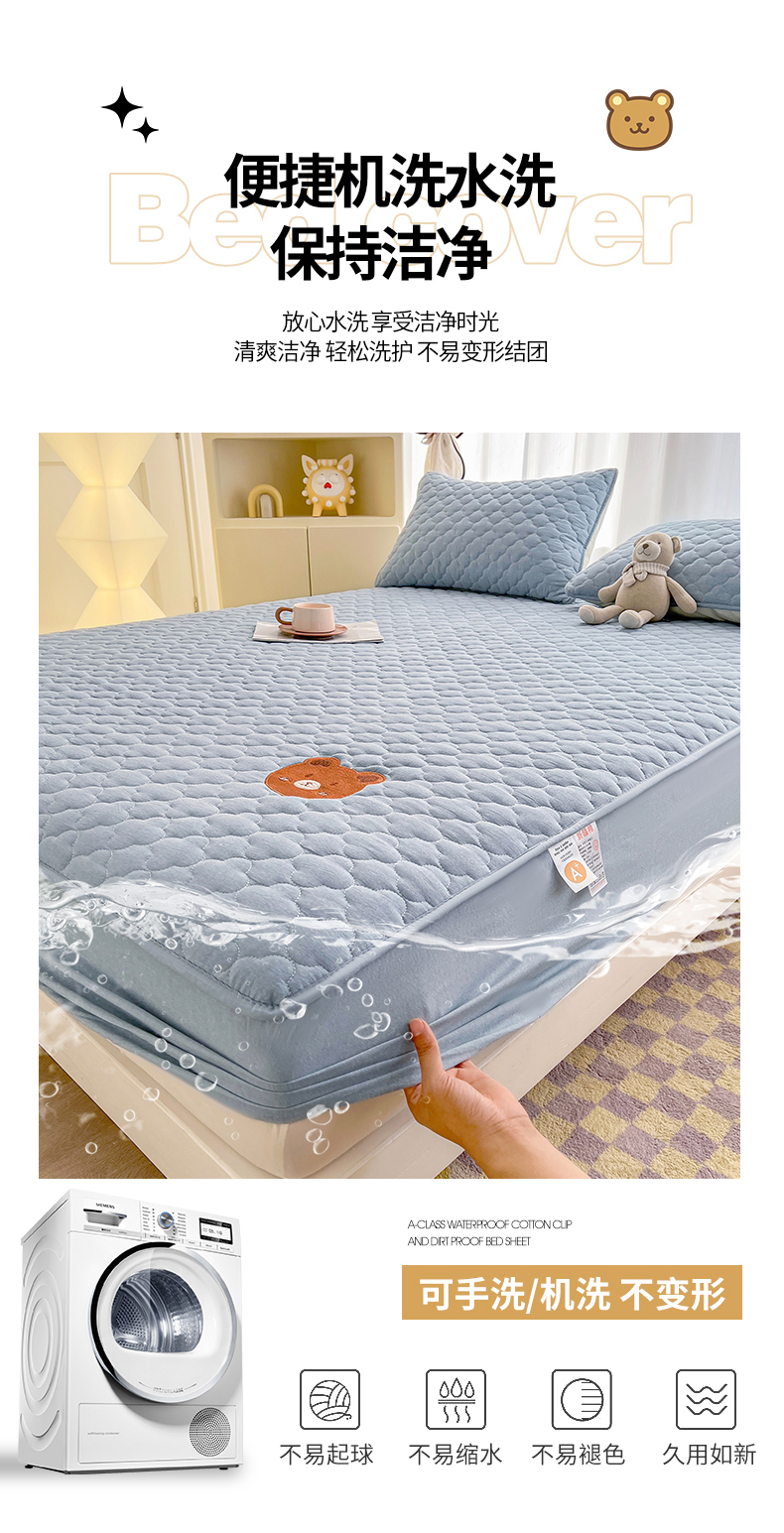 (总)伊人坊 2024新款原棉大豆防水床护垫,明月白,碧水青,布朗灰,玫瑰粉,米杏色,苹果绿