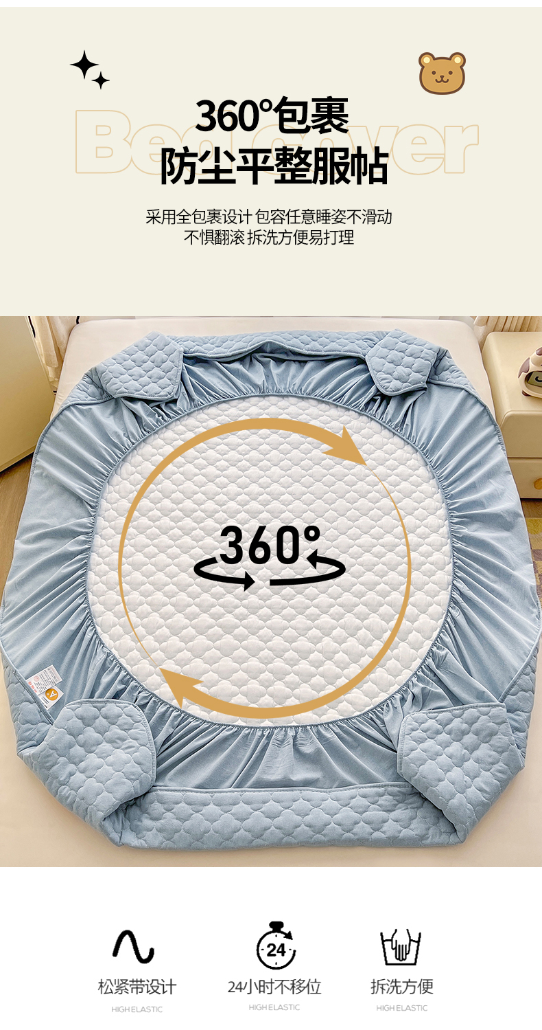 (总)伊人坊 2025新款A类全棉纯棉100s夹棉床笠,砂糖粉,星辰灰