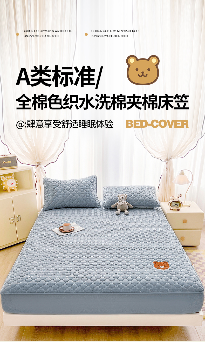 (总)伊人坊 2025新款A类全棉色织水洗棉大豆夹棉床笠,艾格 浅粉,艾格 浅蓝,森屿 粉蓝,森屿 咖黄,森屿 咖蓝,森屿 雾灰