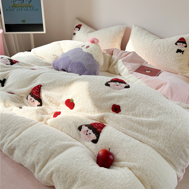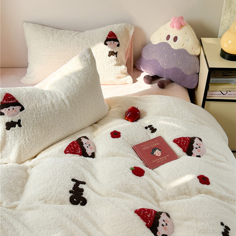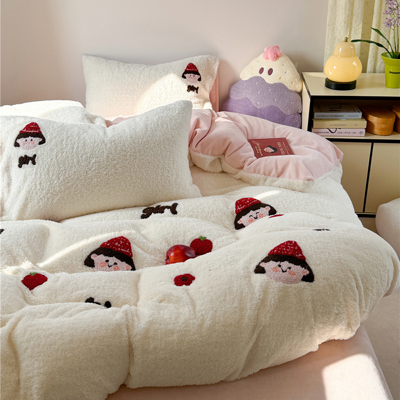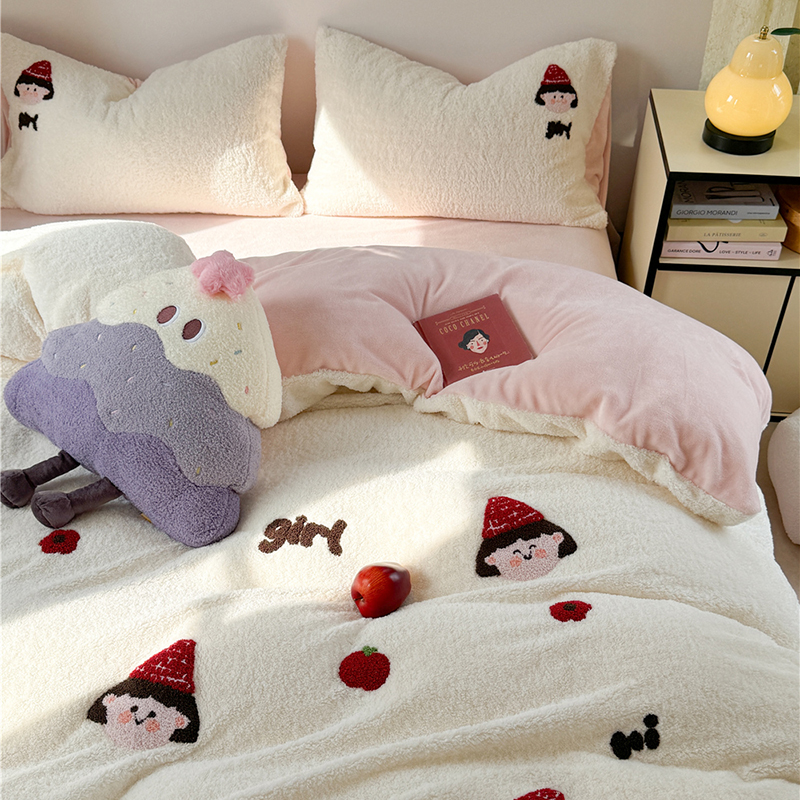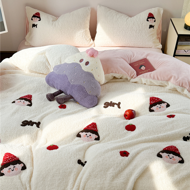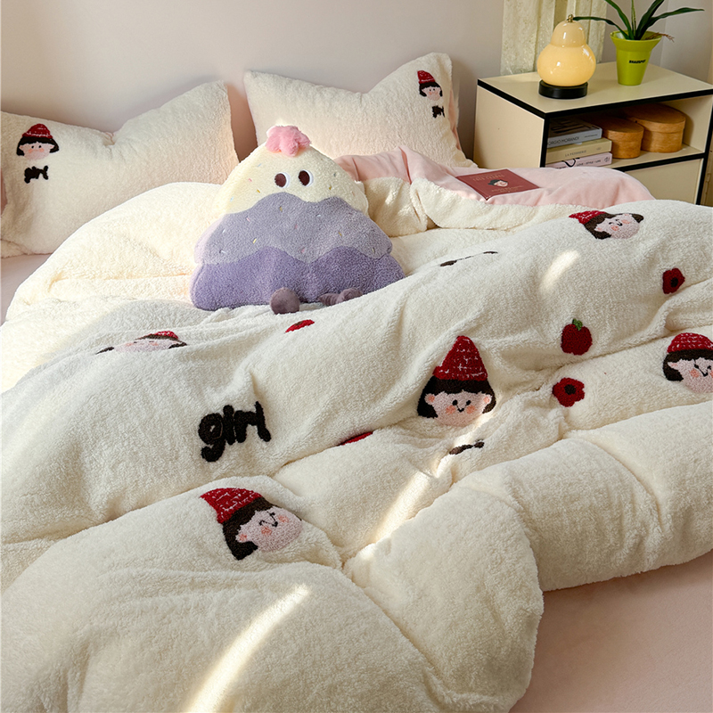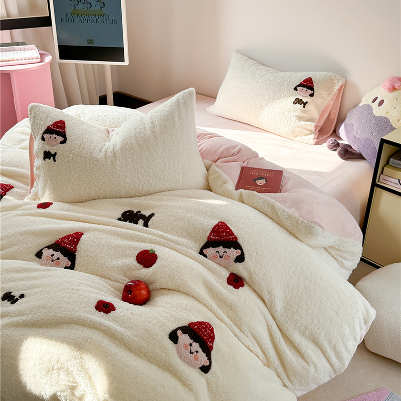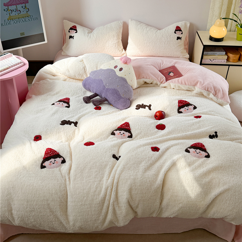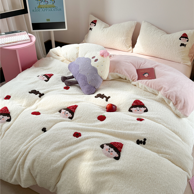 当前位置: 91家纺网 > 商品网购 > 床品套件 > 四件套 > 其它四件套 > 佰亿莱 2025新款泰迪绒蚂蚁绒刺绣四件套 小女孩