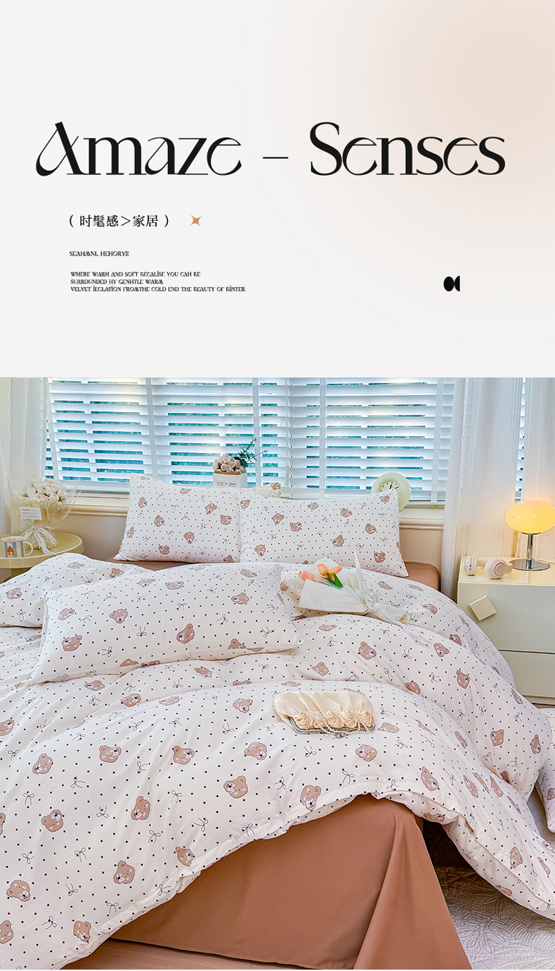 金米诺 2024款A类有氧针织棉双层纱加厚四件套 奇妙熊