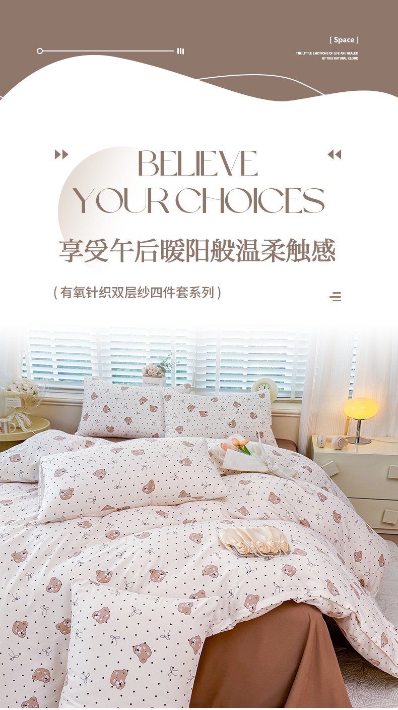 商品名称:金米诺 2024款A类有氧针织棉双层纱加厚四件套 奇妙熊