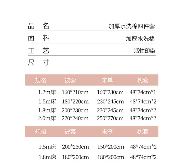 1.5m床笠款四件套 | ¥110.00 |