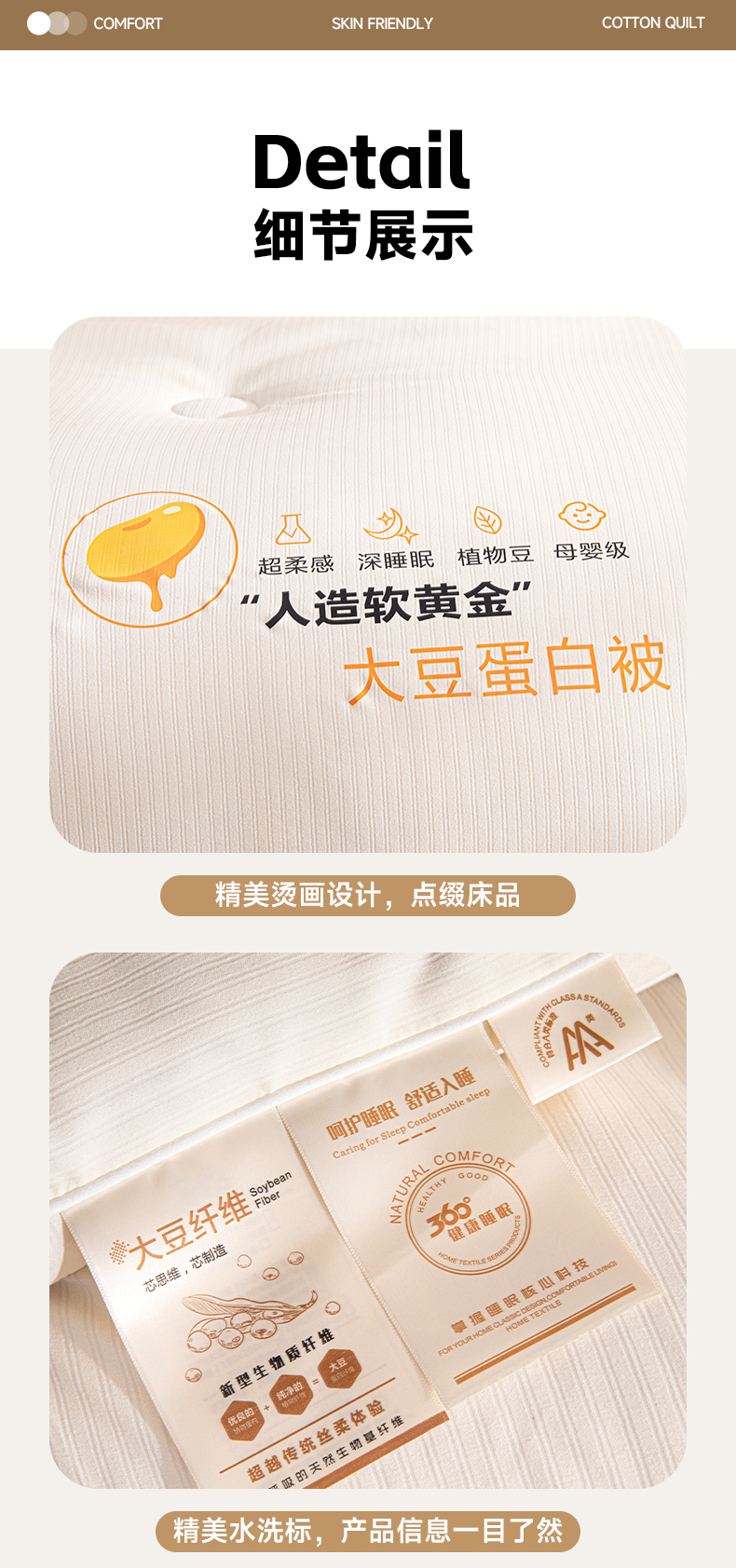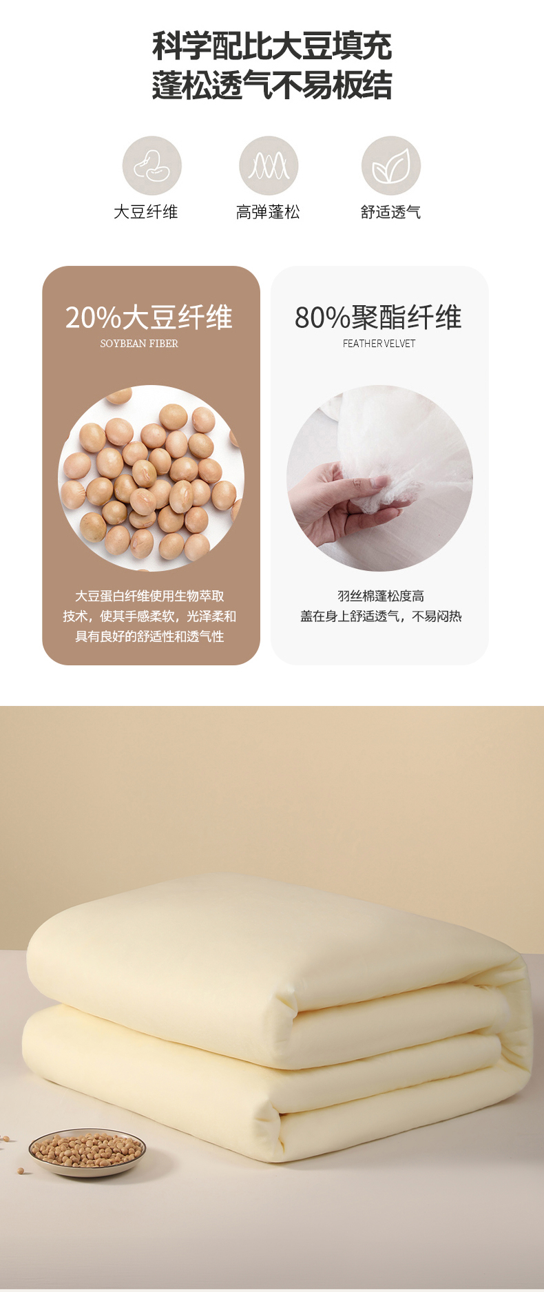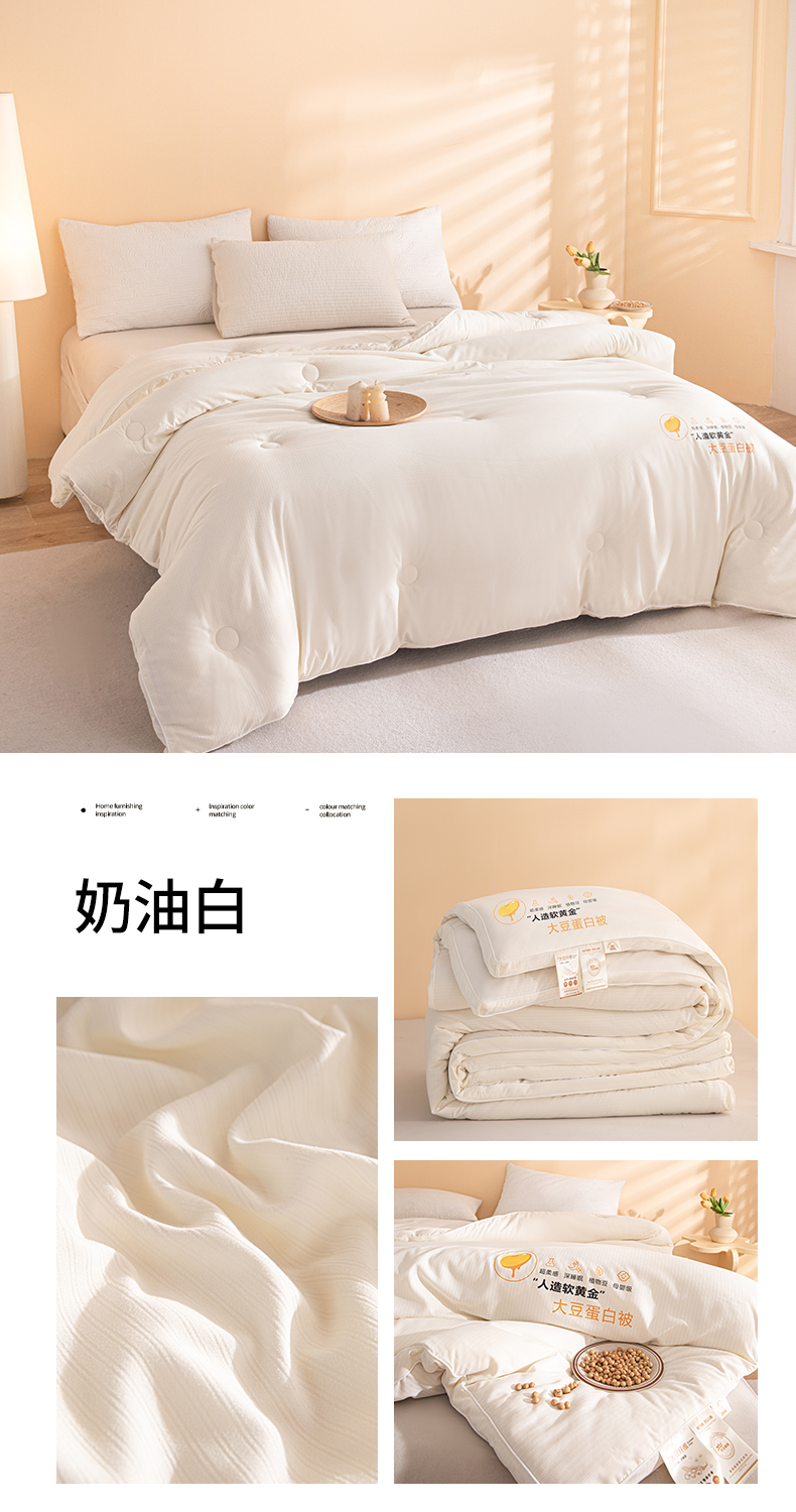 (买家秀爆款不断货)A类母婴级无染针织双拼纯色大豆被子春秋冬被大豆纤维被子被芯大豆被大豆提花被 格林-奶油白