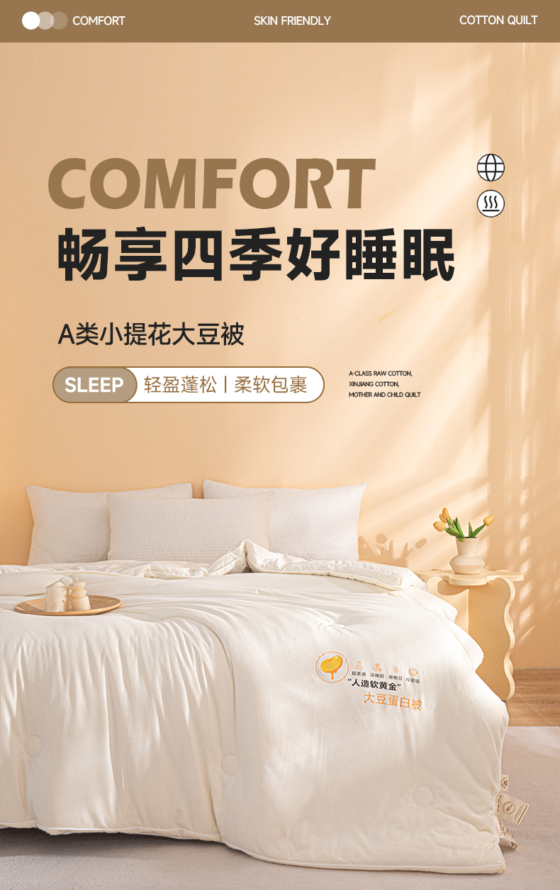 • 91家纺网 家纺一手货源 找家纺 (买家秀爆款不断货)A类母婴级无染针织双拼纯色大豆被子春秋冬被大豆纤维被子被芯大豆被大豆提花被 格林-奶油白