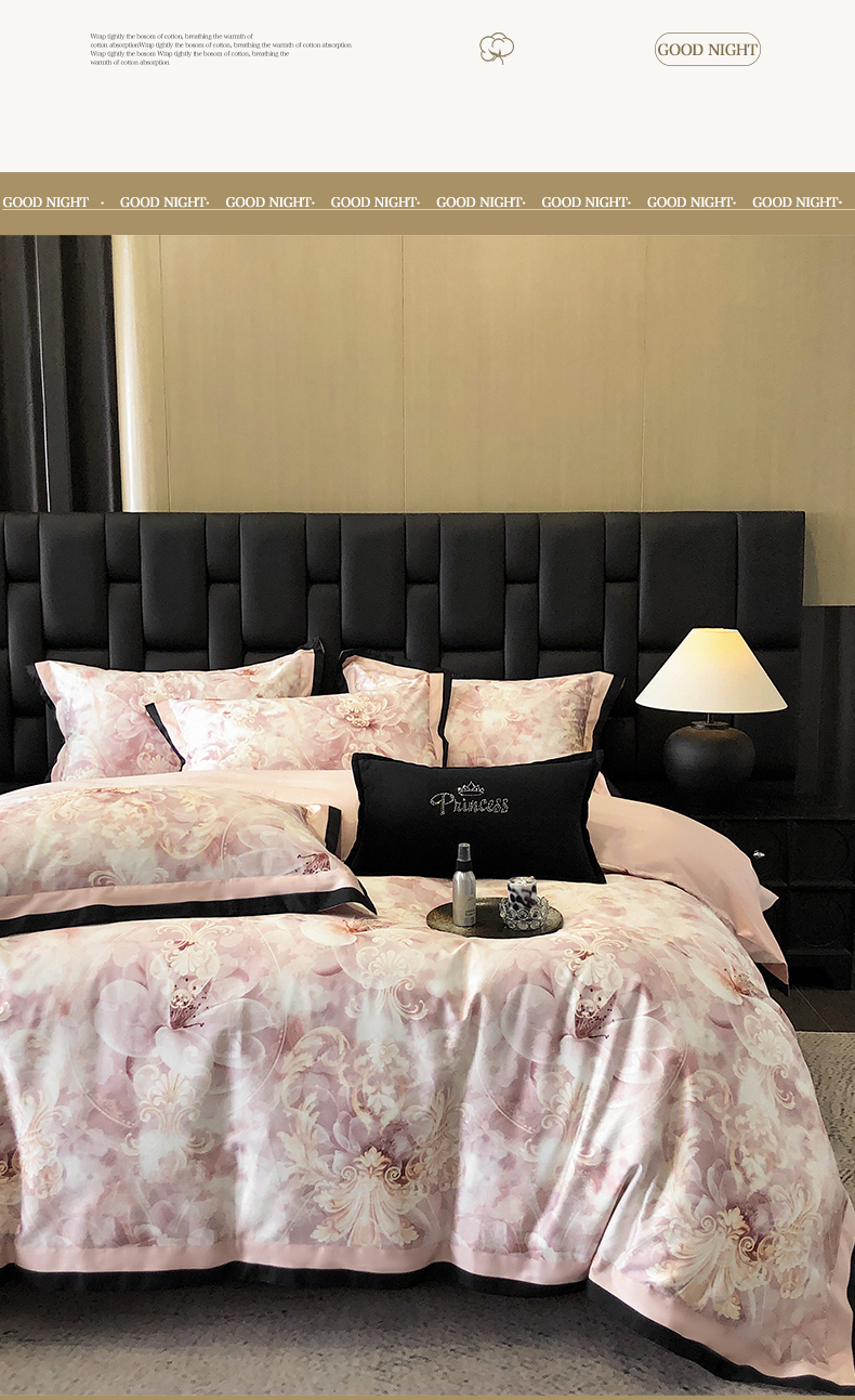(总)博纳家纺 2025新款镂空大宽边拼角高级简奢款亲肤棉四件套-山水提花,繁星蓝,粉玉,高级灰,香槟,象牙白