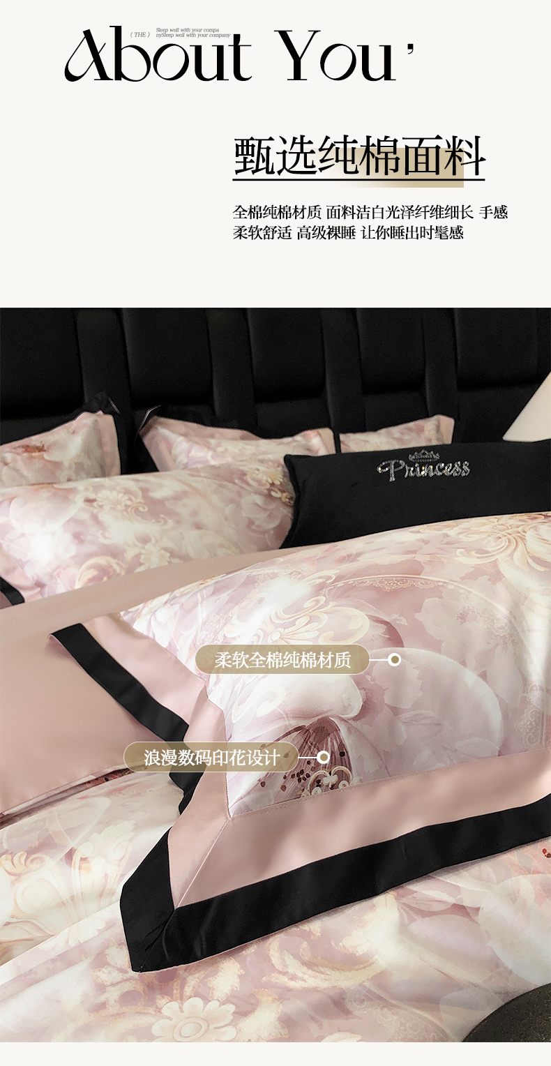 商品名称:2025新款60数码双拼色系列四件套 琥珀时光