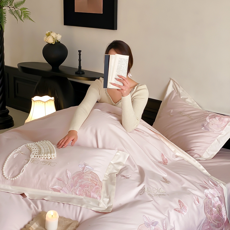 2025新款100支全棉四件套-绮梦风格二 粉色