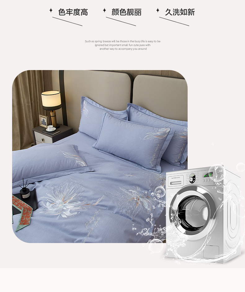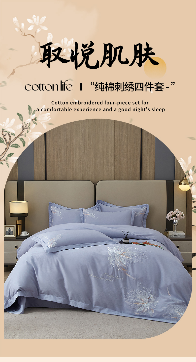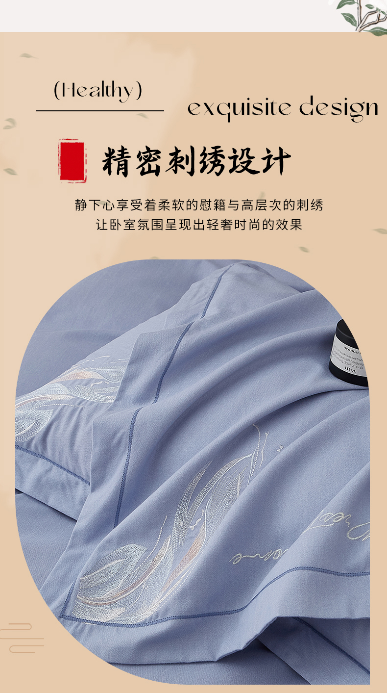 商品名称:雲归梦 2025新款全棉加厚磨毛绣花宽边工艺四件套-叶语情深 叶语情深-浅蓝