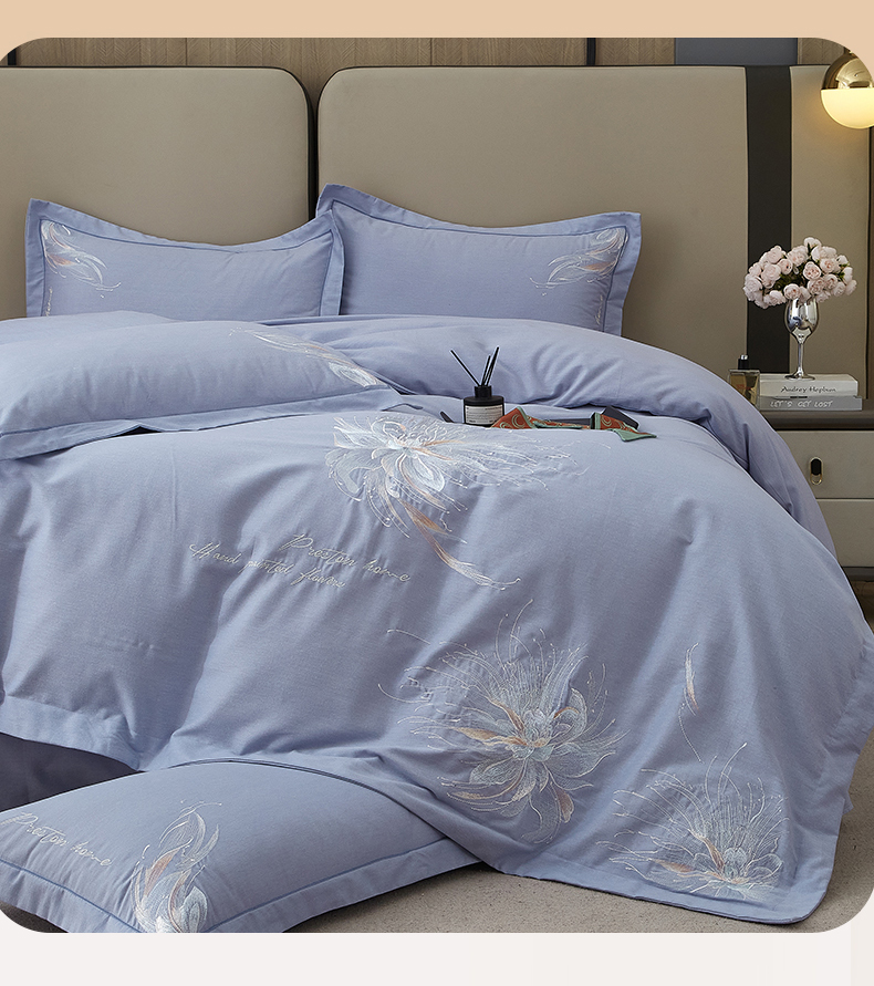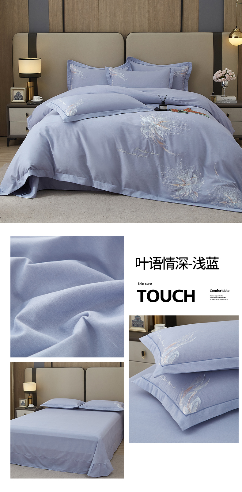 雲归梦 2025新款全棉加厚磨毛绣花宽边工艺四件套-叶语情深 叶语情深-浅蓝