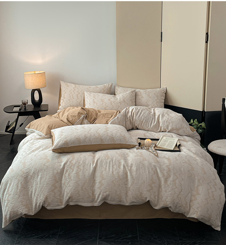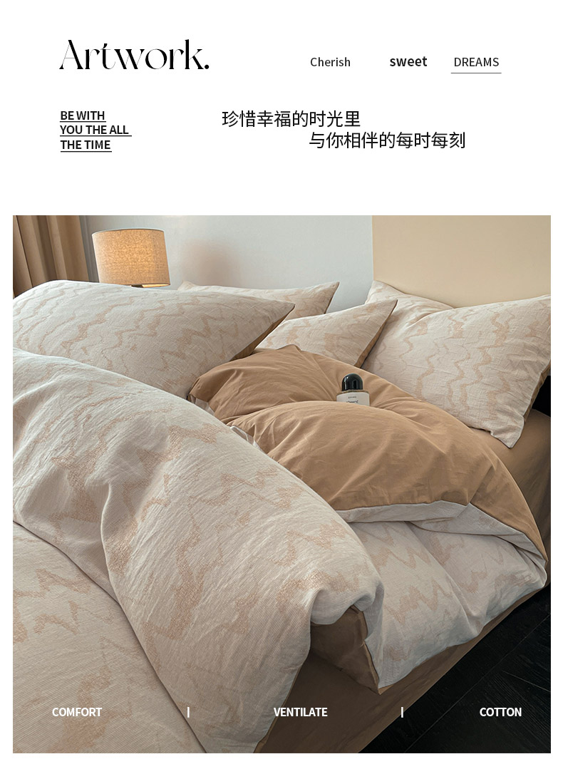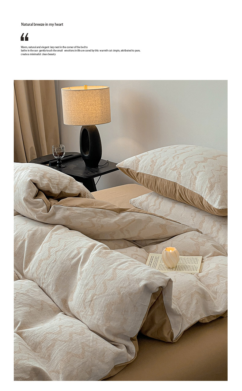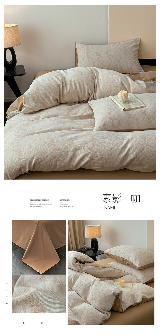 商品名称:ab家纺 2025新款全棉三层纱小提花四件套 素影-咖