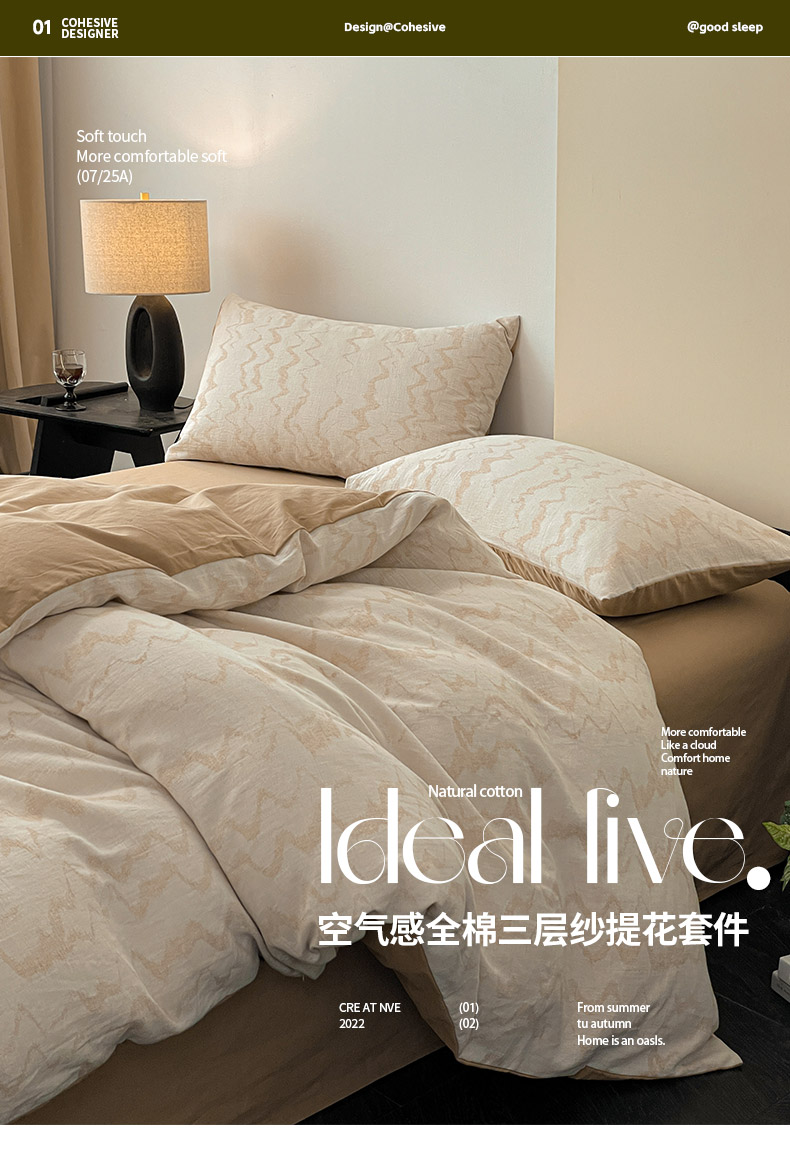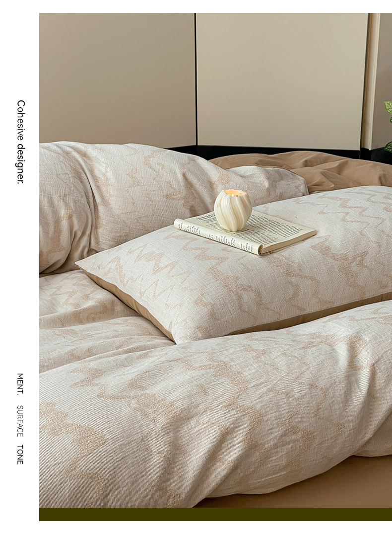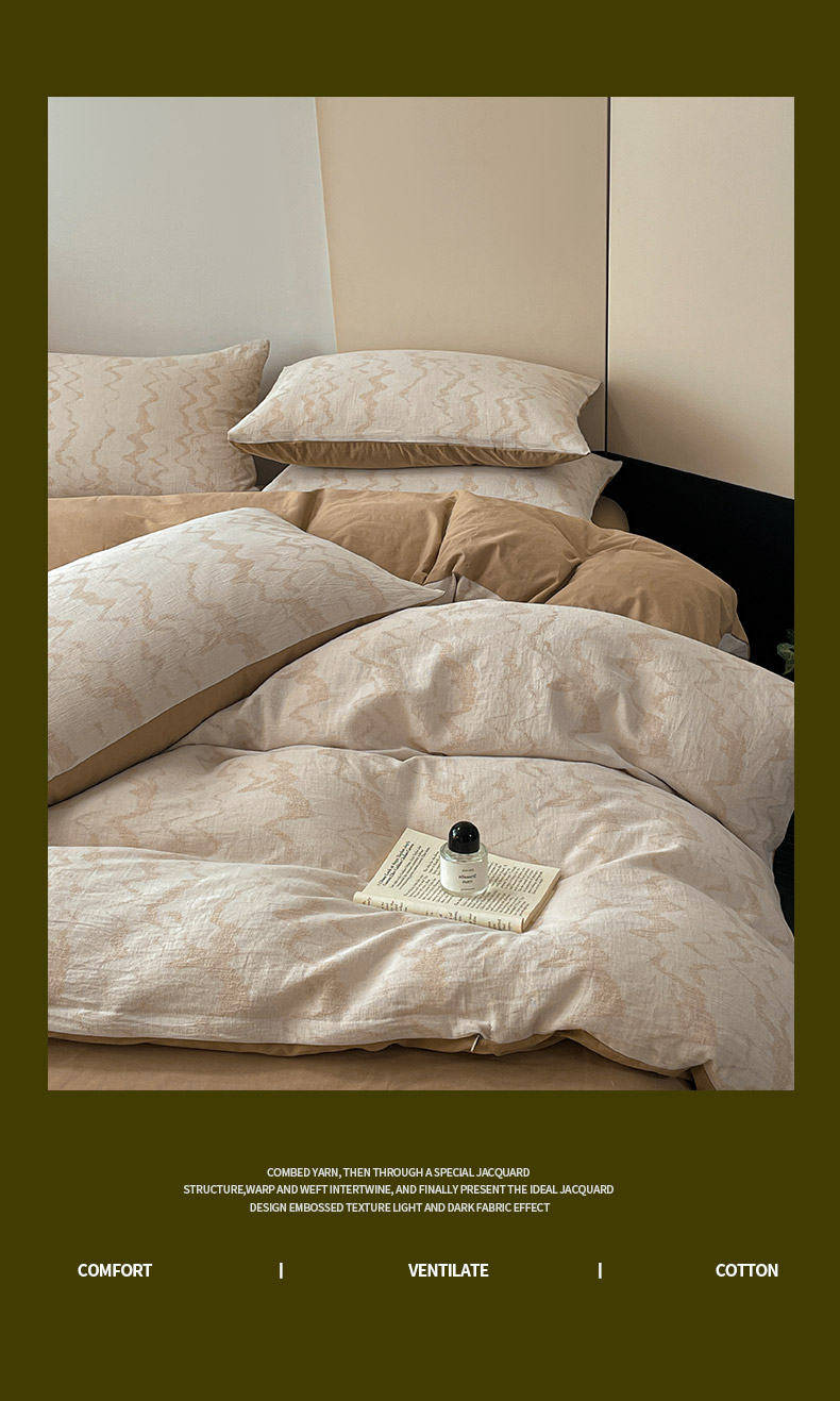 商品名称:ab家纺 2025新款全棉三层纱小提花四件套 素影-咖