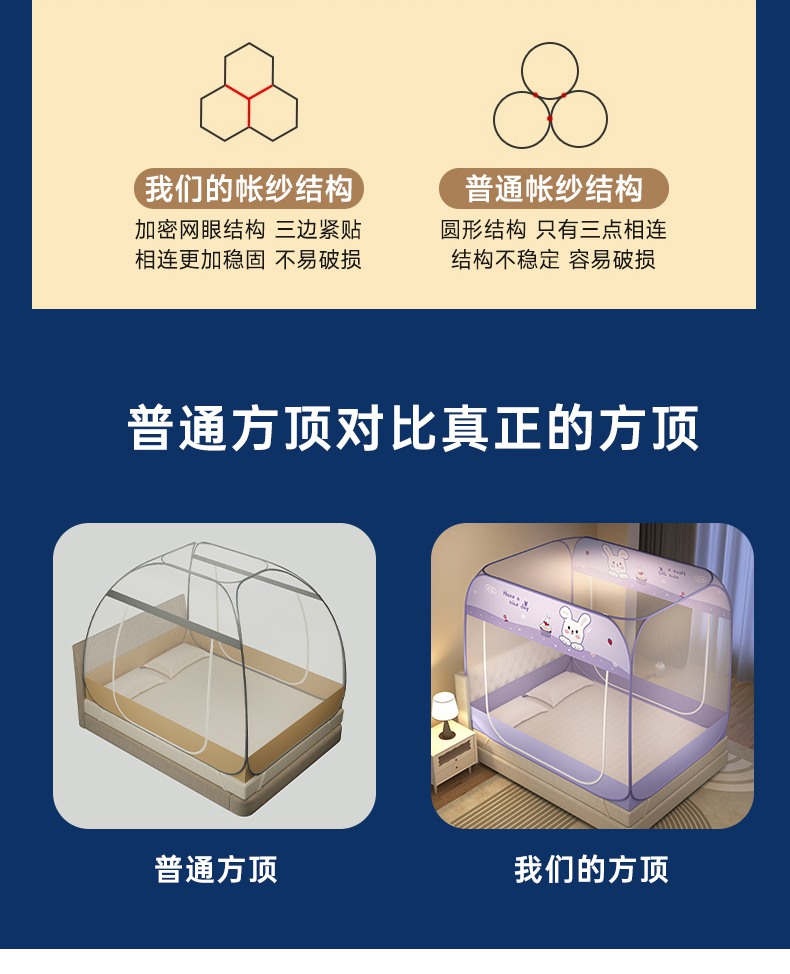 商品名称:青竹苑 2025新款免安装大顶魔术蚊帐布三角款 太空蓝