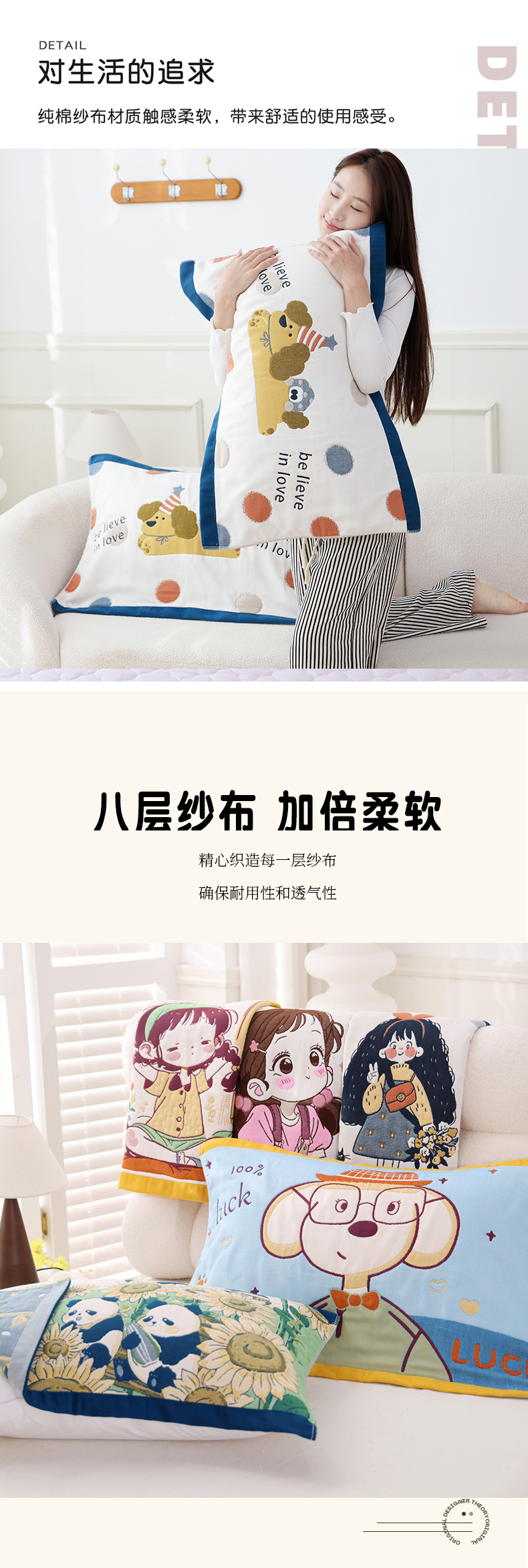商品名称:(总)朴尔家纺-毛巾被 2025新款萌萌系八层纯棉加厚纱布枕巾