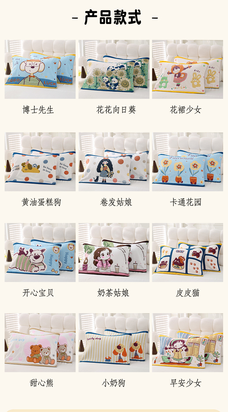 (总)朴尔家纺-毛巾被 2025新款全棉纯棉多柔AB版定位四层纱布枕巾单枕巾枕巾单件,粉红猫 52x75cm枕巾一对,狗狗巴士 52x75cm枕巾一对,咖啡时光 52x75cm枕巾一对,牛角甜包 52x75cm枕巾一对,桃心熊 52x75cm枕巾一对,童年记忆 52x75cm枕巾一对,玩趣南瓜熊 52x75cm枕巾一对,元气猫 52x75cm枕巾一对