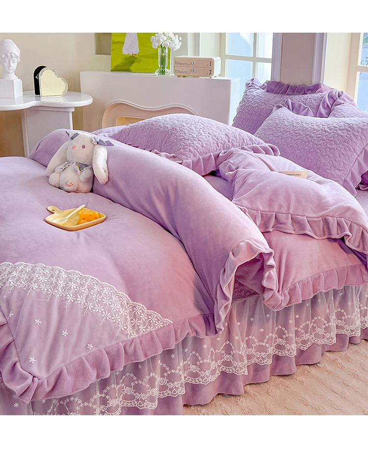 漫布云2025秋冬新款11斤230g全消光牛奶绒夹棉床盖款四件套纯色蕾丝花边刺绣床裙款床盖,蝶恋花-梦幻紫, 蝶恋花-嫩黄, 蝶恋花-新芽绿 ,蝶恋花-婴儿蓝 ,蝶恋花-樱花粉