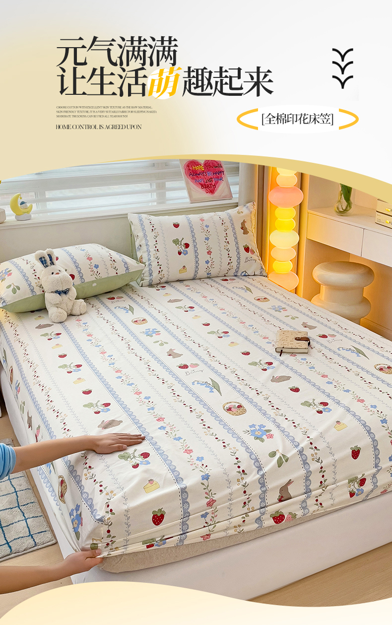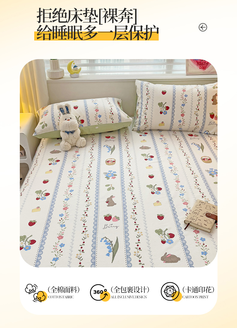 名兮家居 2025新款13372全棉印花四件套单品系列-单床笠 草莓兔兔