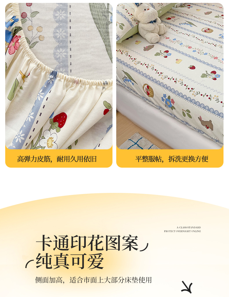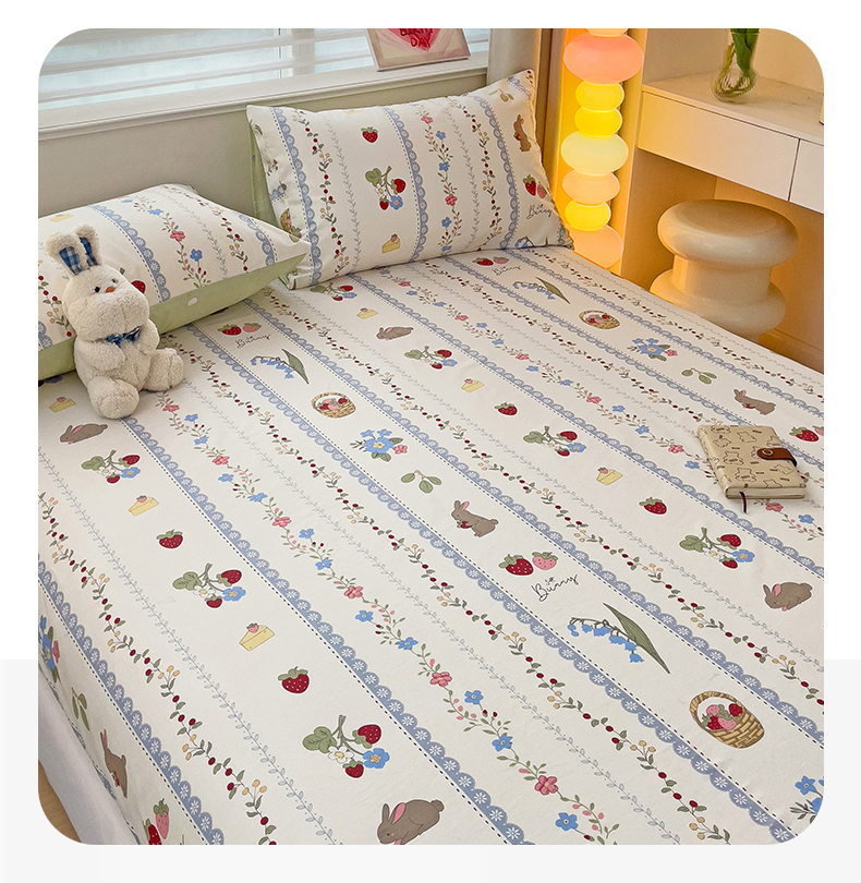 当前位置: 91家纺网 > 商品网购 > 床上用品 > 床单 > 名兮家居 2025新款13372全棉印花四件套单品系列-单床笠 草莓兔兔