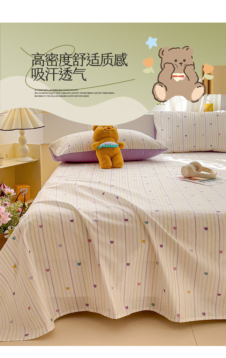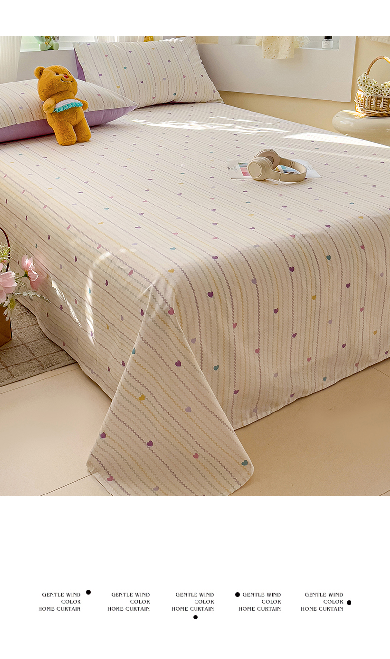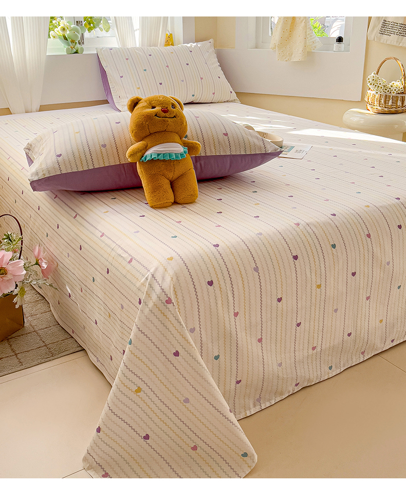 名兮家居 2025新款13372全棉印花四件套单品系列-单床单 紫爱心