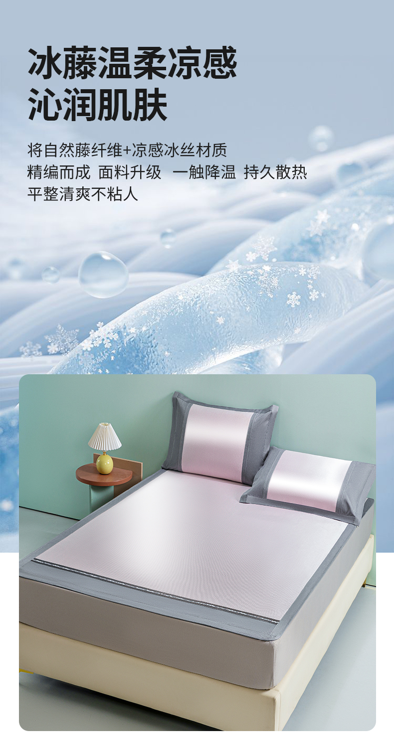 (总)阿牛席业 2025新款冰藤凉席系列冰藤抑菌凉席,抑菌冰藤席-灰【条席款】,抑菌冰藤席-蓝【条席款】