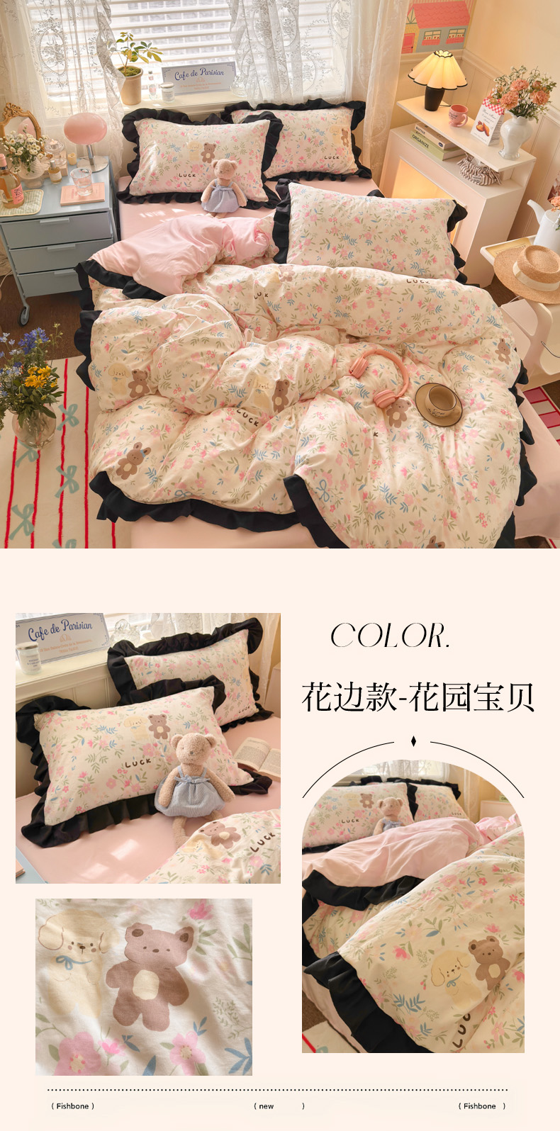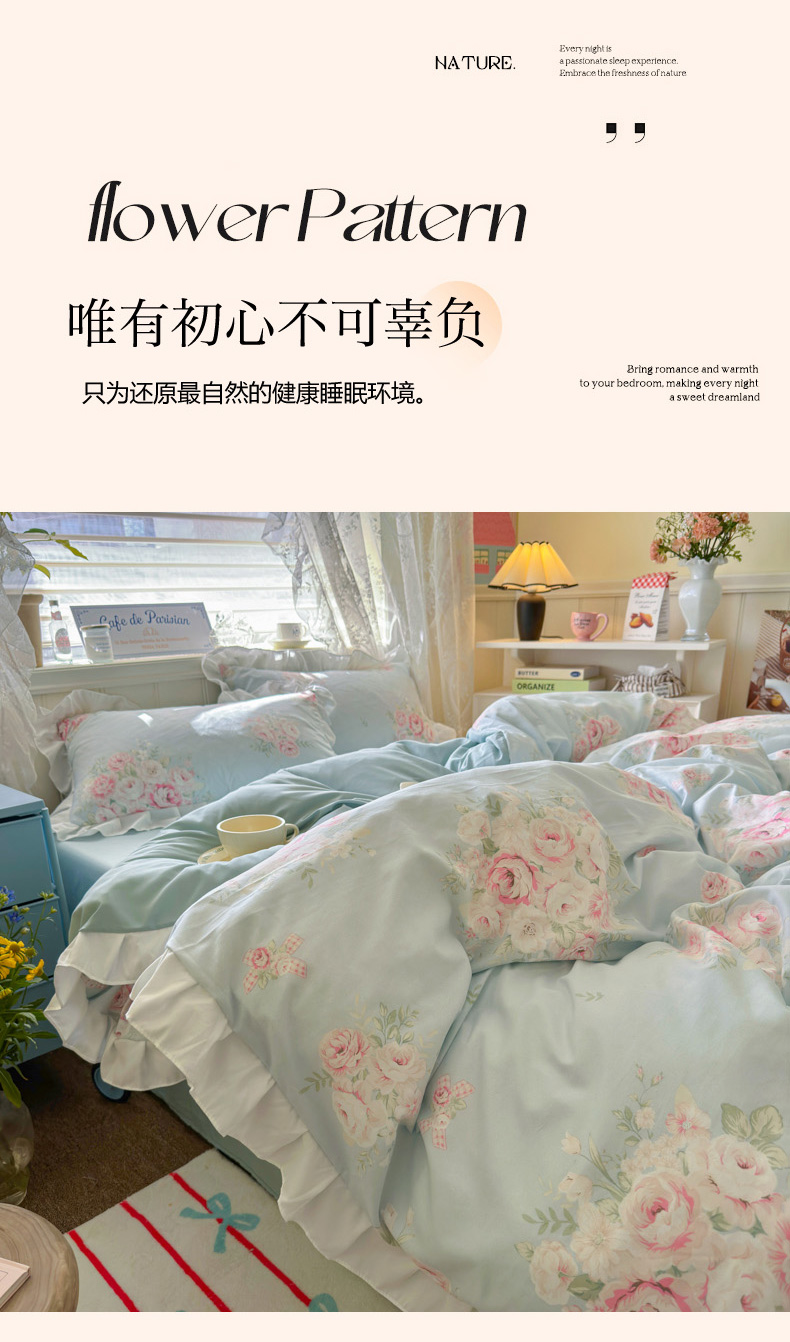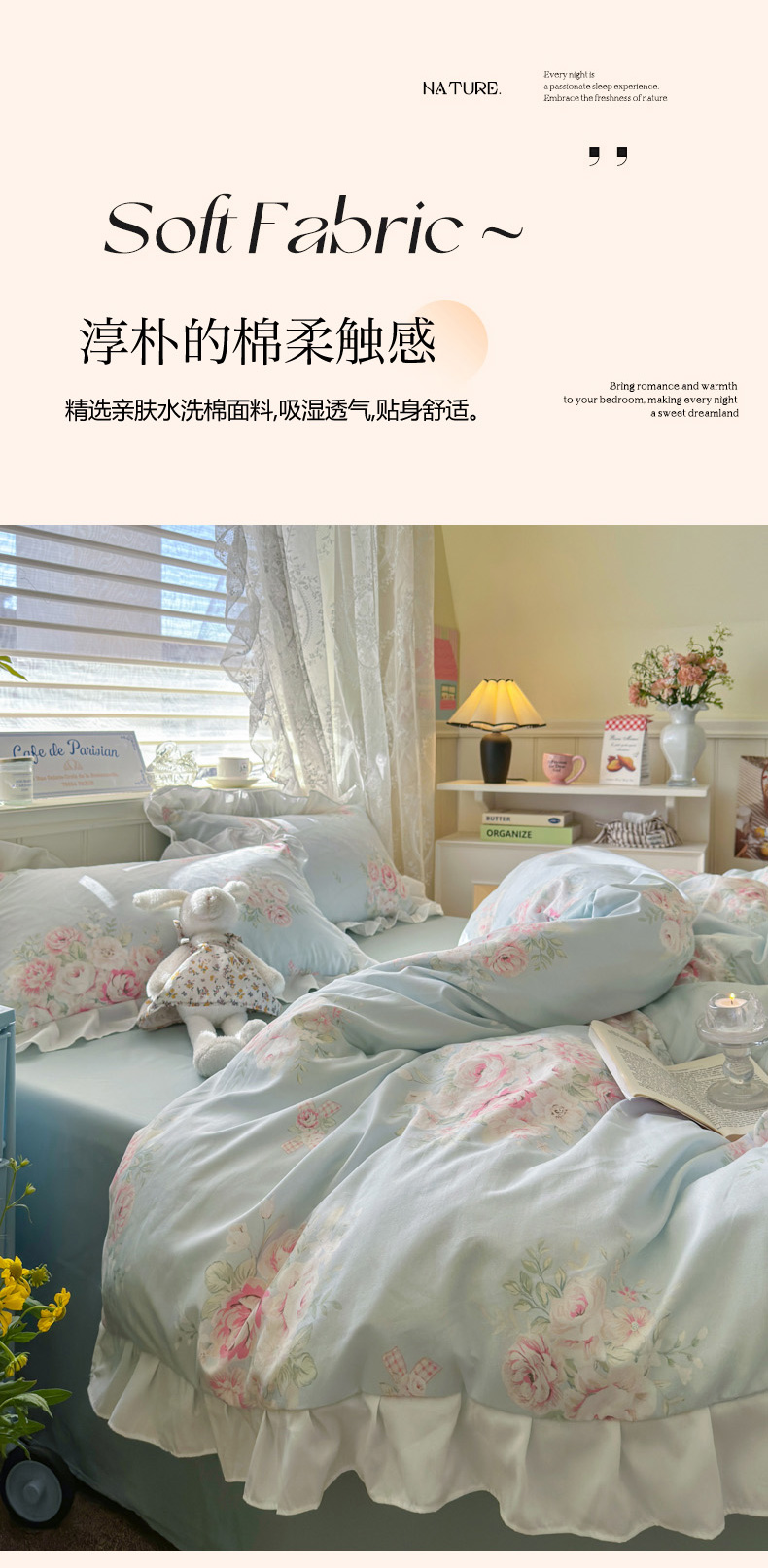 (总)慕澄家纺 2025新款法式浪漫风花边款水洗棉四件套
