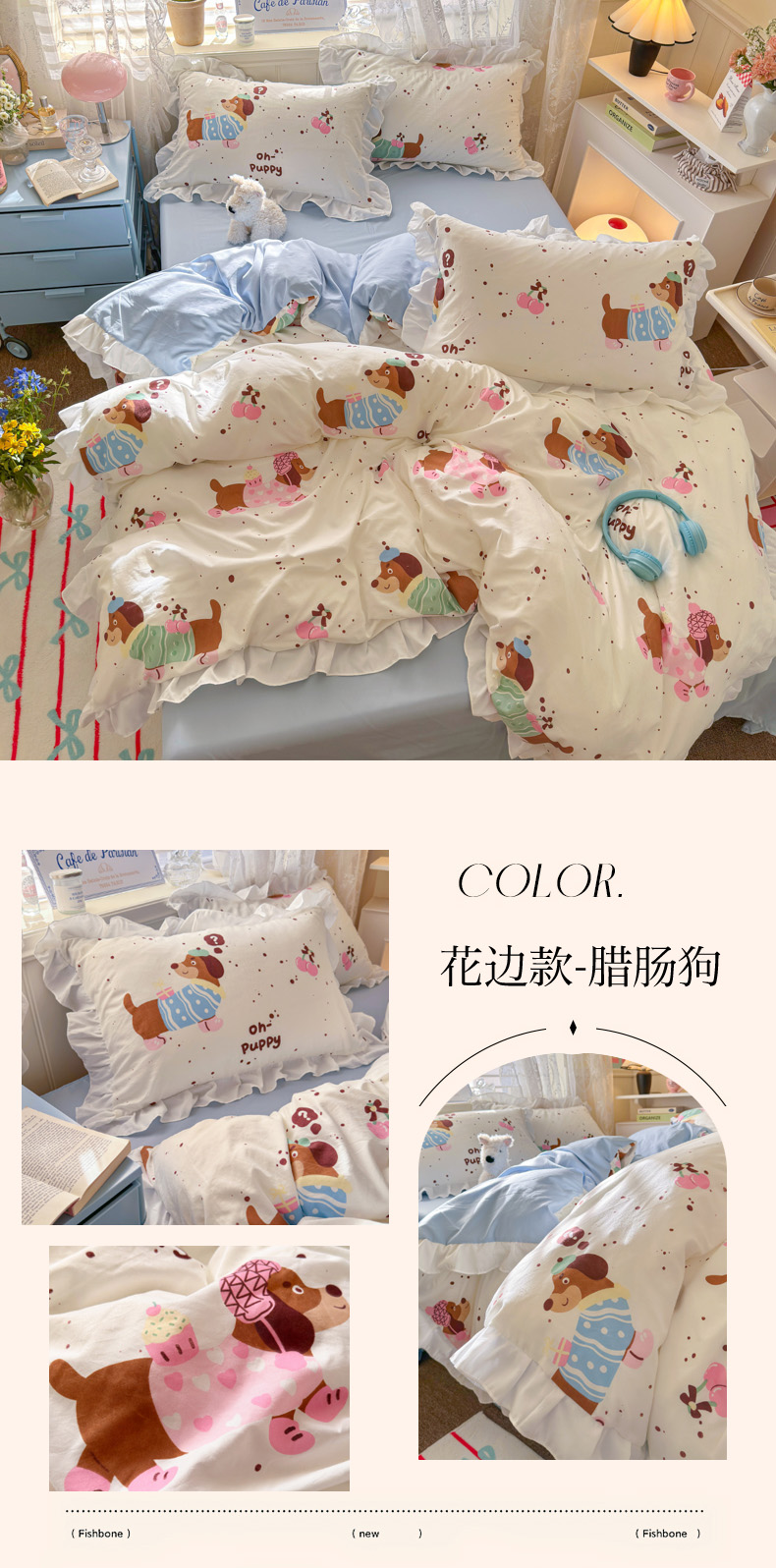 (总)慕澄家纺 2025新款小清新牛奶绒印花四件套,爱心甜宠,蛋糕猫咪,奶奶可爱,梦幻花语,浪漫波点,快乐卡皮,酷酷狗,咖系小女孩,黑白配,格子小猫,粉色郁金香,粉色喵喵,繁花,点点熊仔,蓝条凯蒂,橙意满满,奶南瓜,趣味狗,碎花小汪,碎碎紫兔,甜品美乐蒂,小美好,心心相印,星星月亮