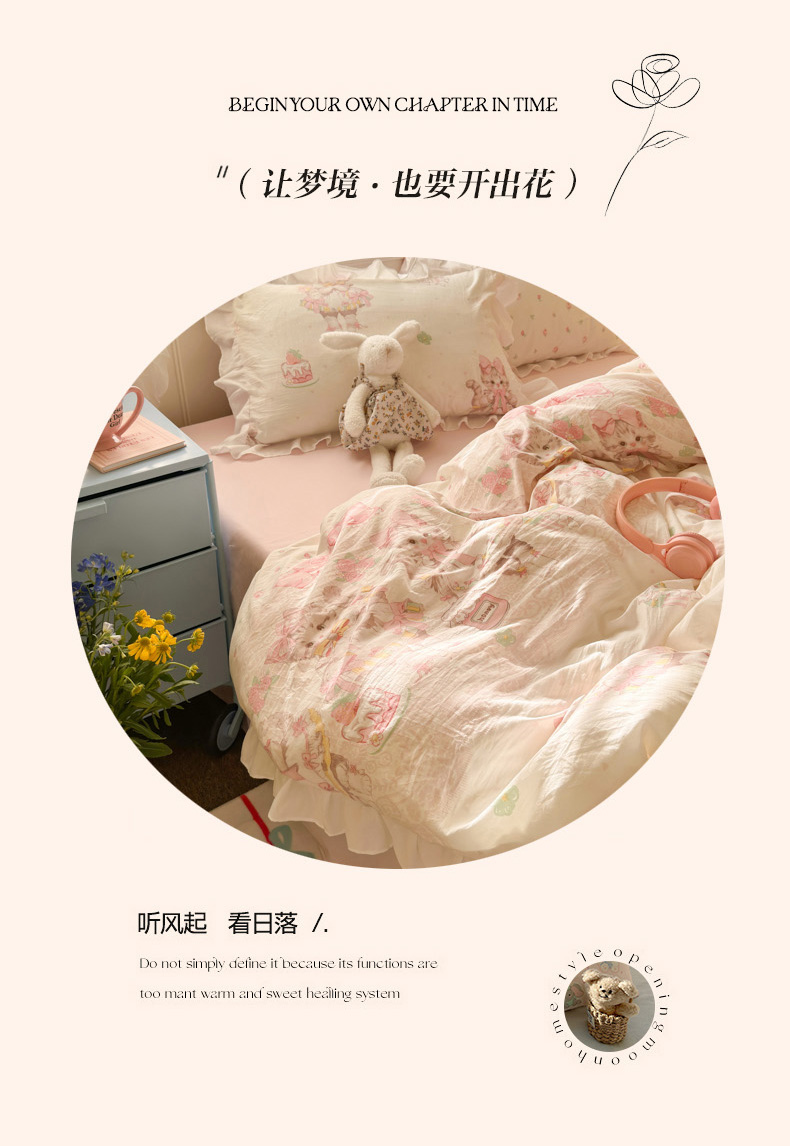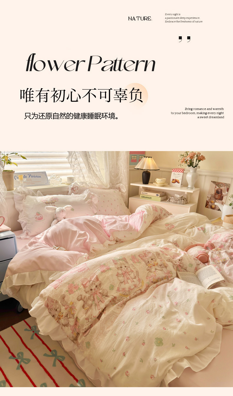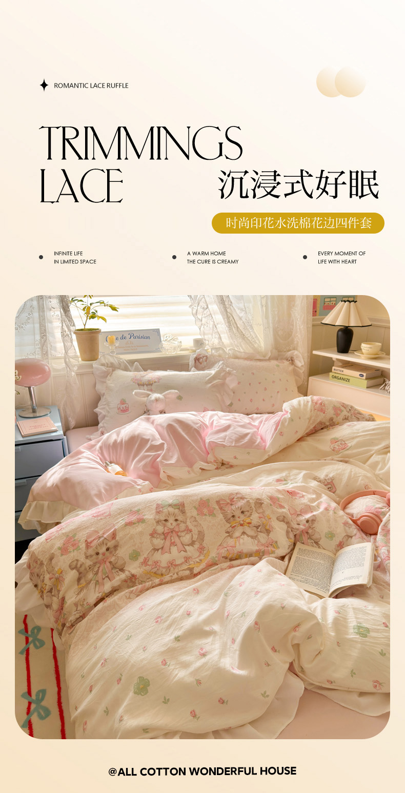 当前位置: 91家纺网 > 商品网购 > 床品套件 > 四件套 > 水洗棉四件套 > 慕澄家纺 2025新款法式浪漫风花边款水洗棉四件套 花边款-洛丽塔