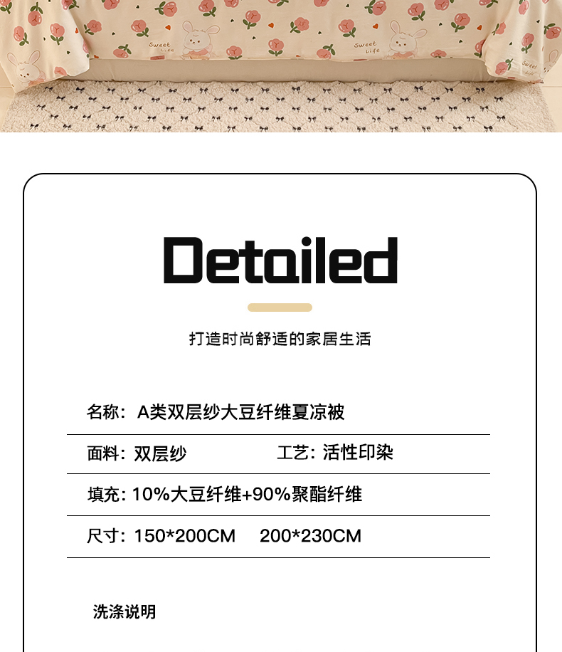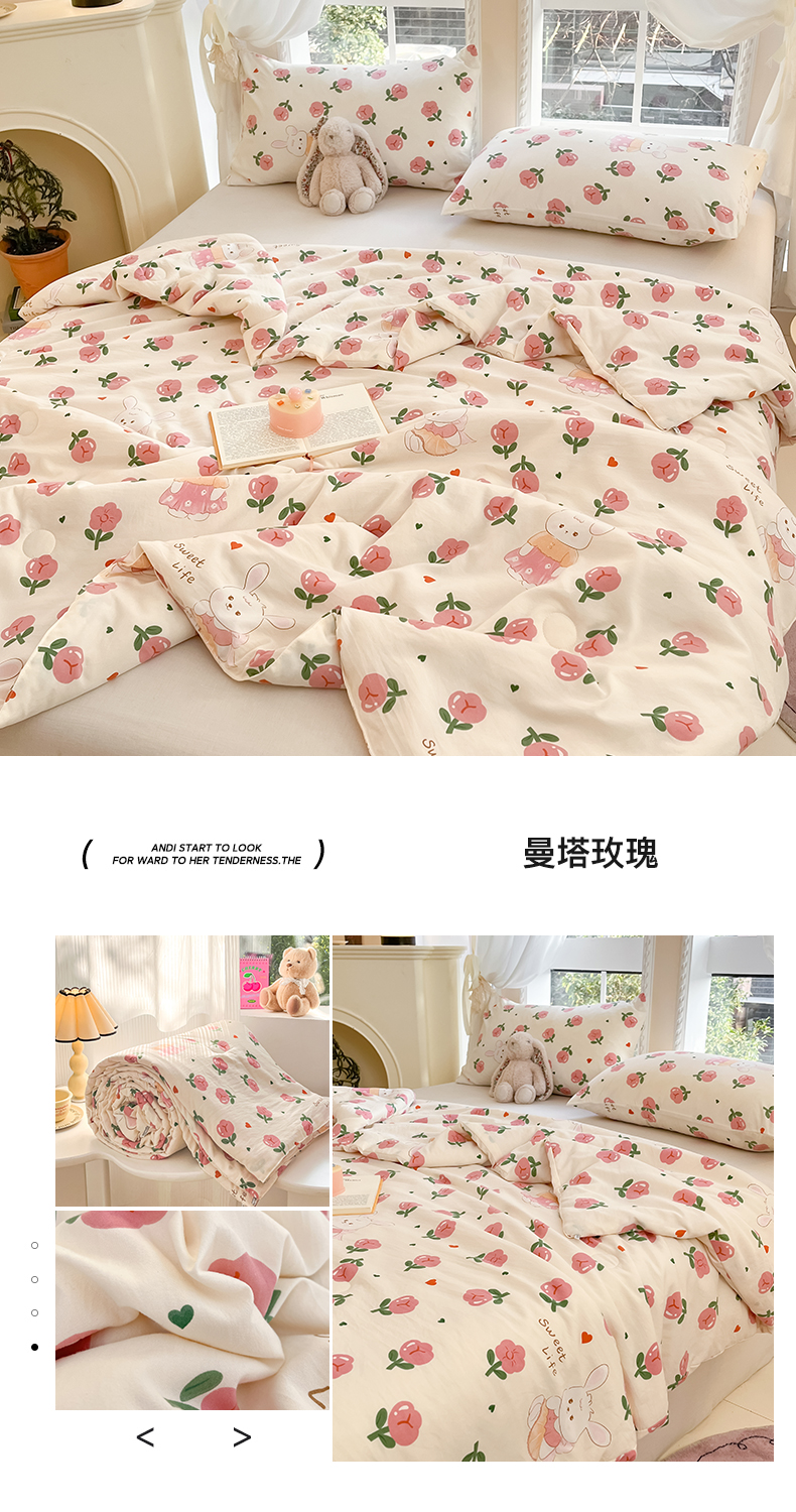 商品名称:星巴k家纺 2025糯糯棉A类大豆蛋白纤维夏凉被双层纱水洗棉夏被大豆被 曼塔玫瑰