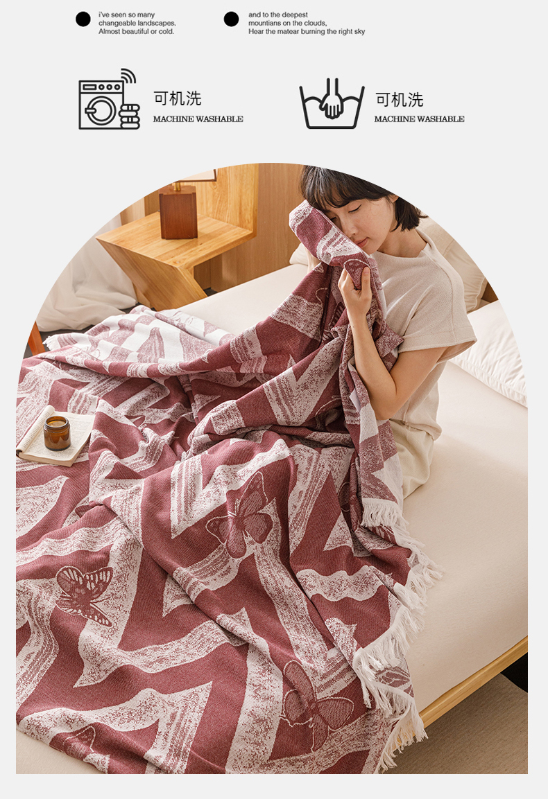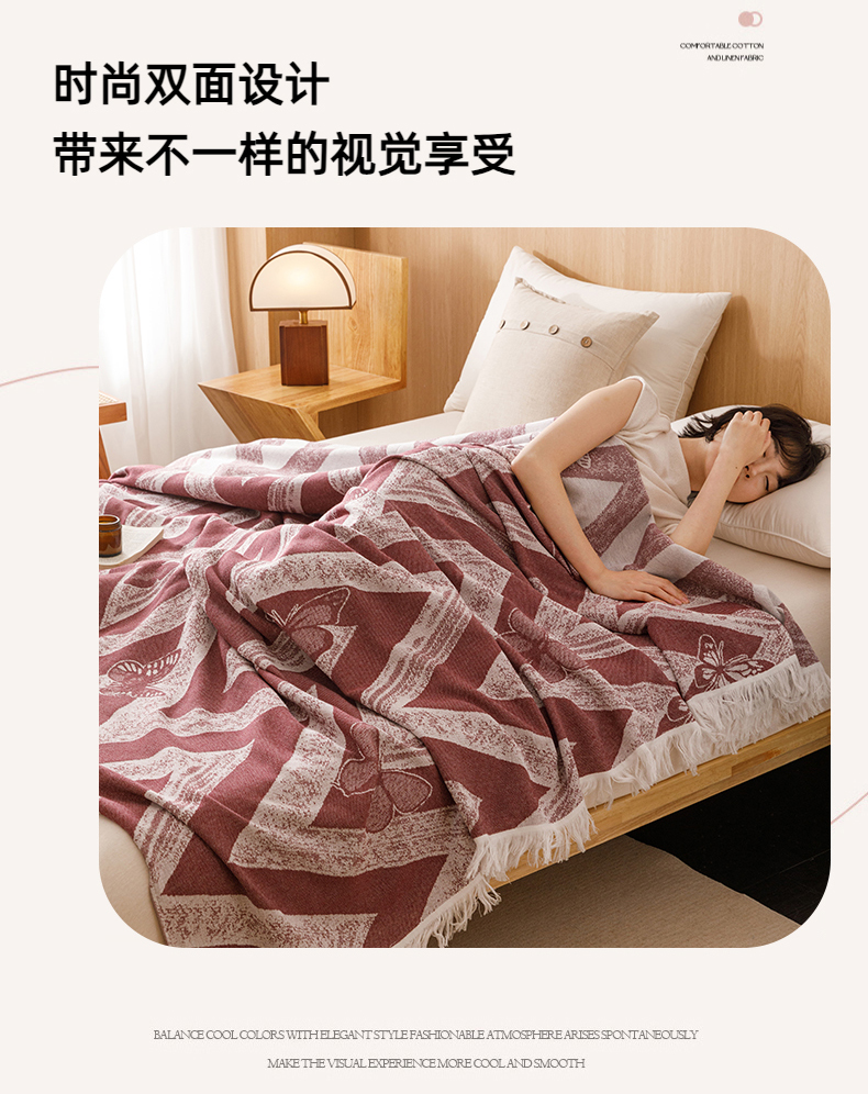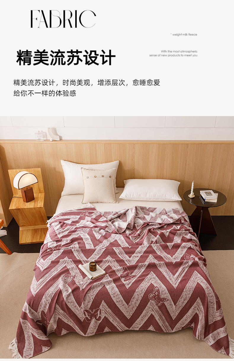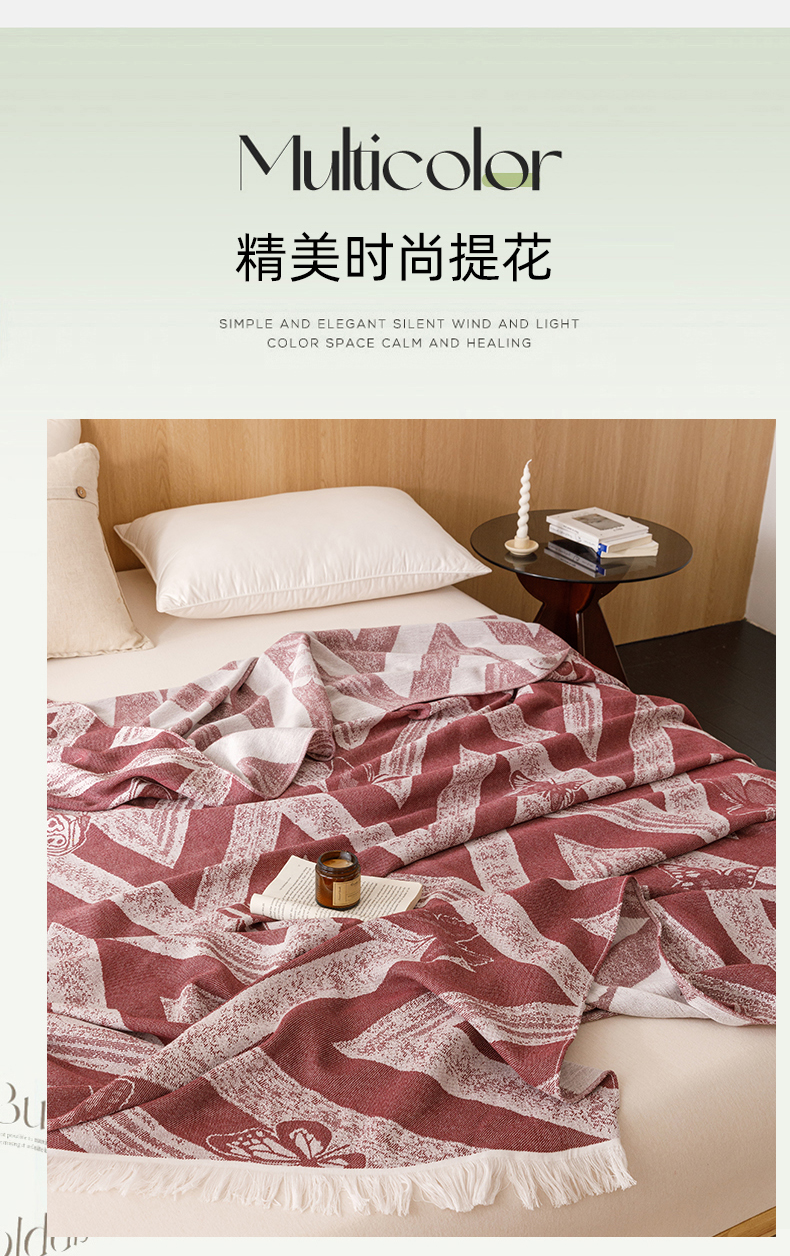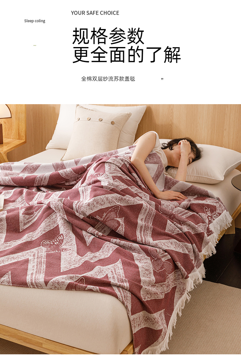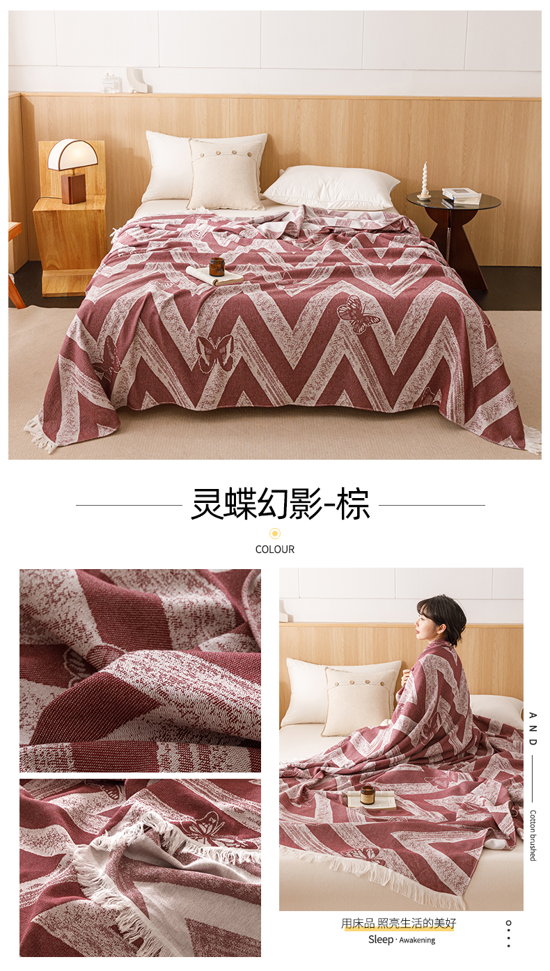 商品名称:悦然毛巾被 2025新款全棉双层纱流苏款盖毯 灵蝶幻影棕