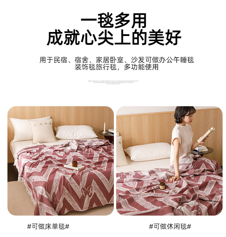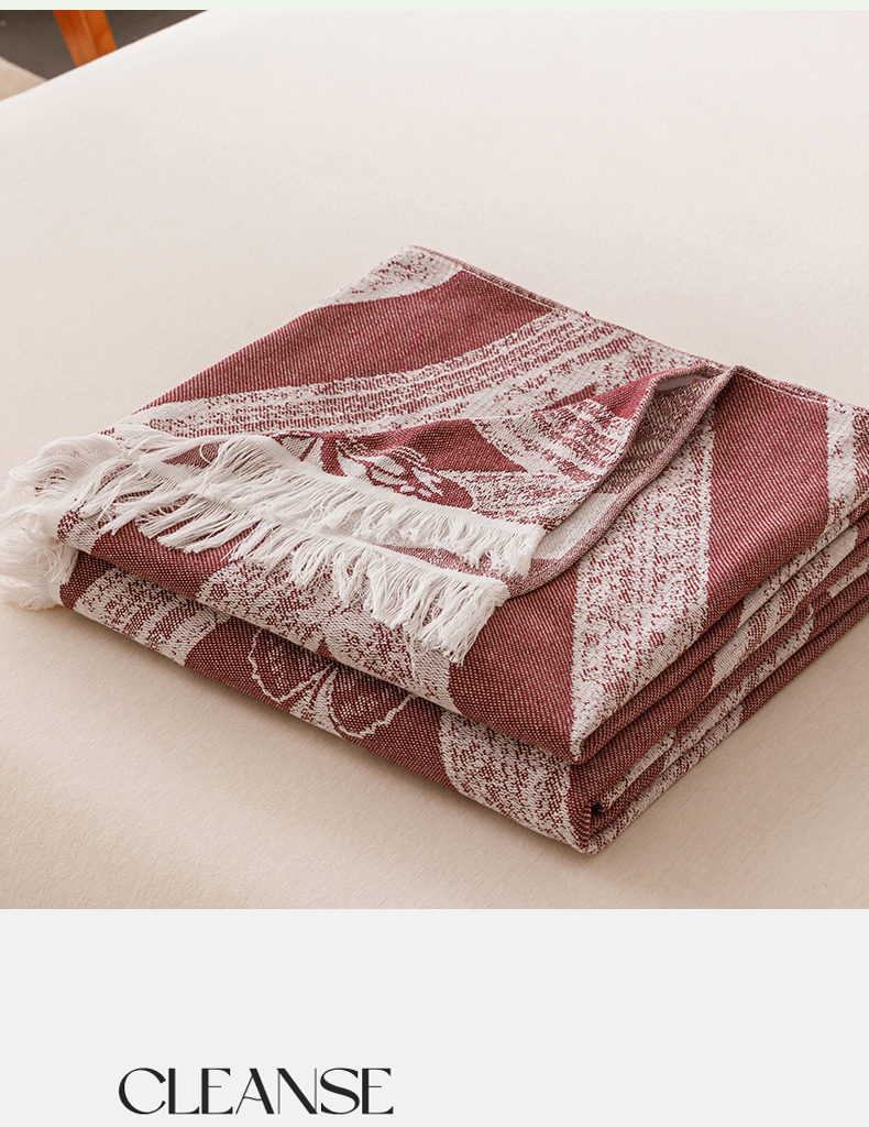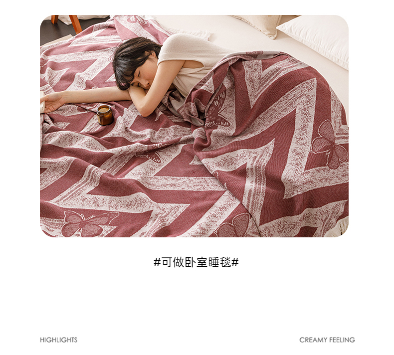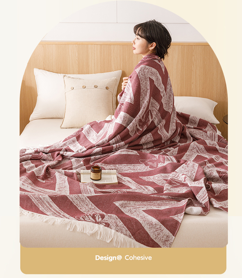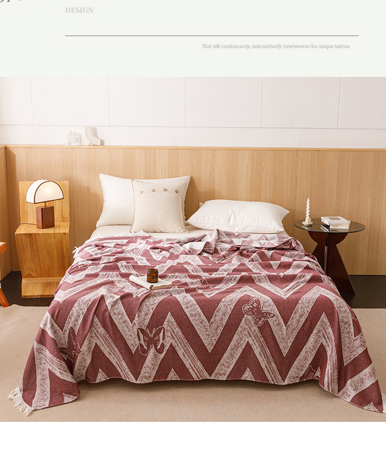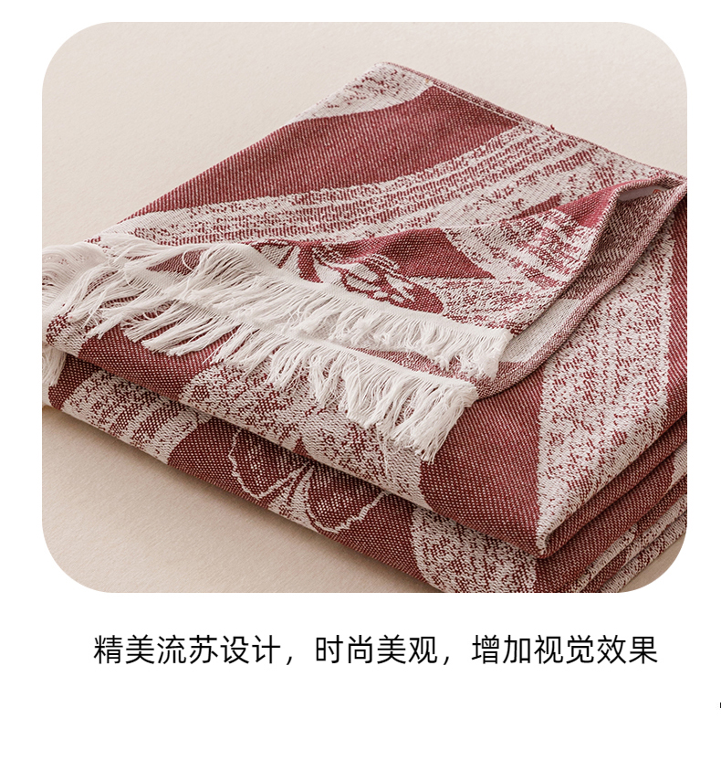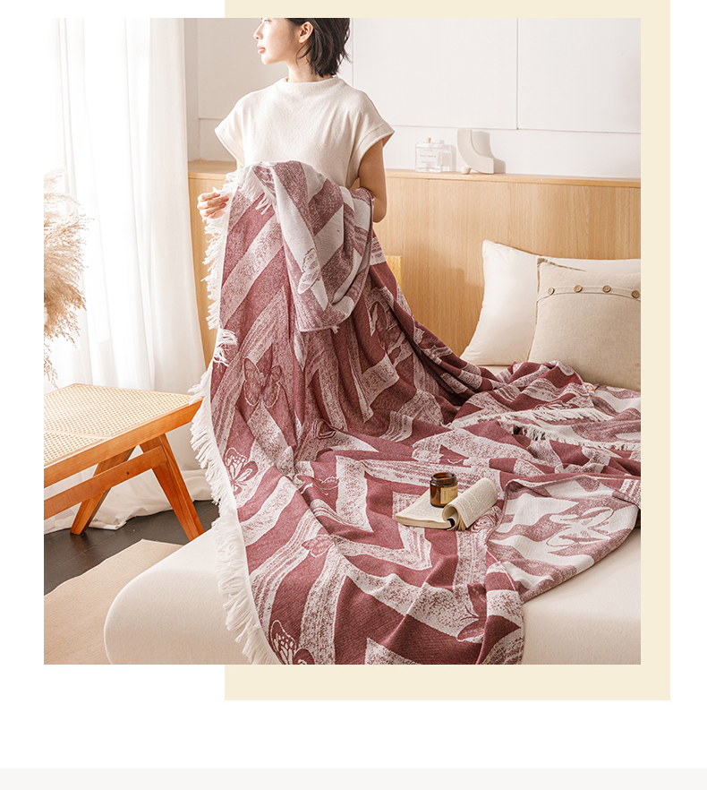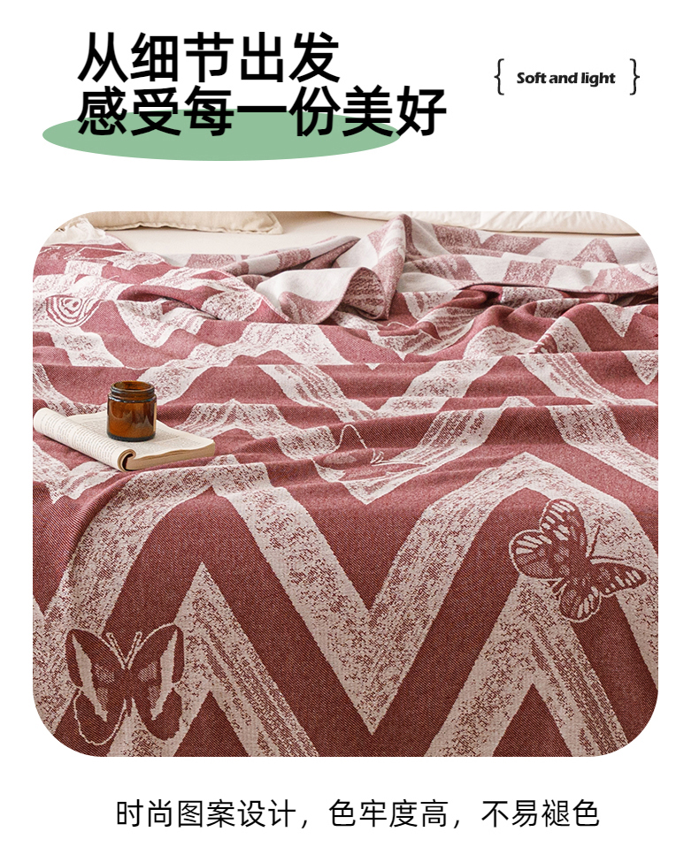 商品名称:悦然毛巾被 2025新款全棉双层纱流苏款盖毯 灵蝶幻影棕
