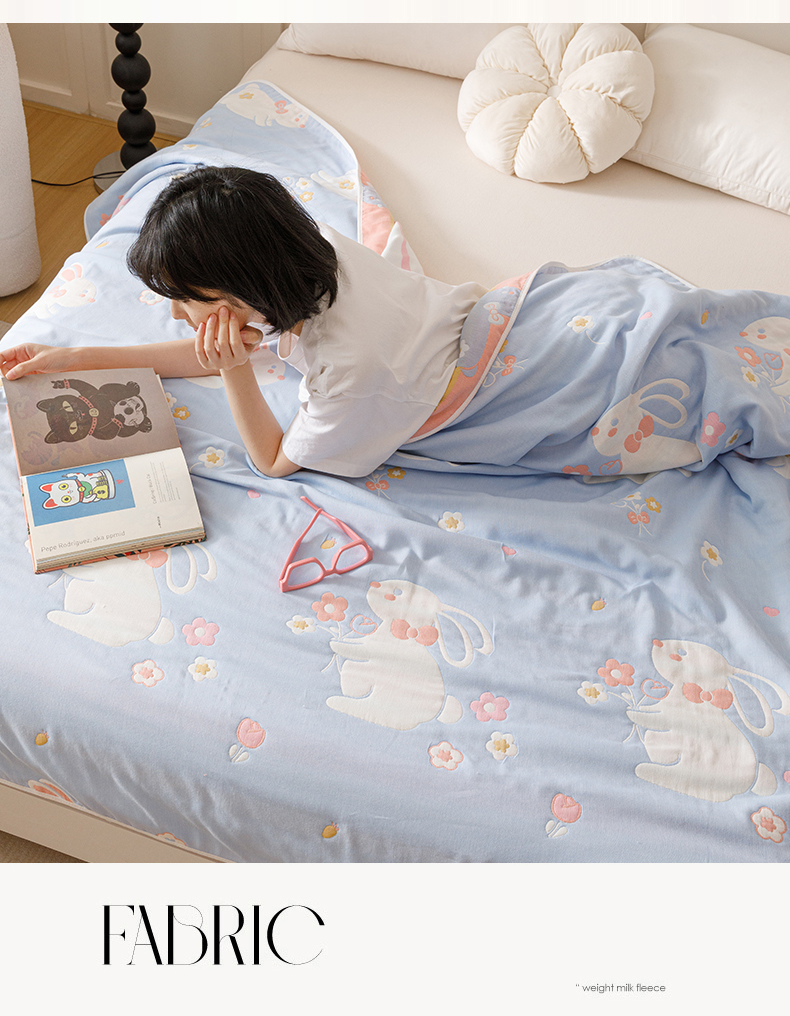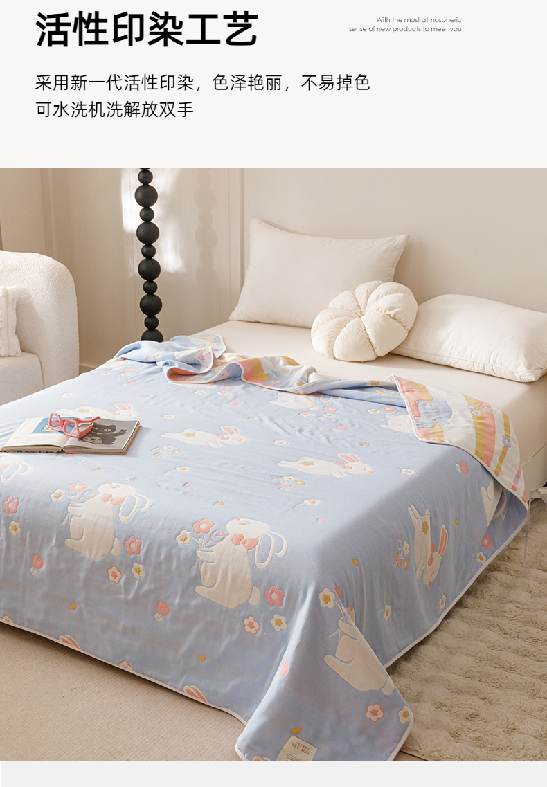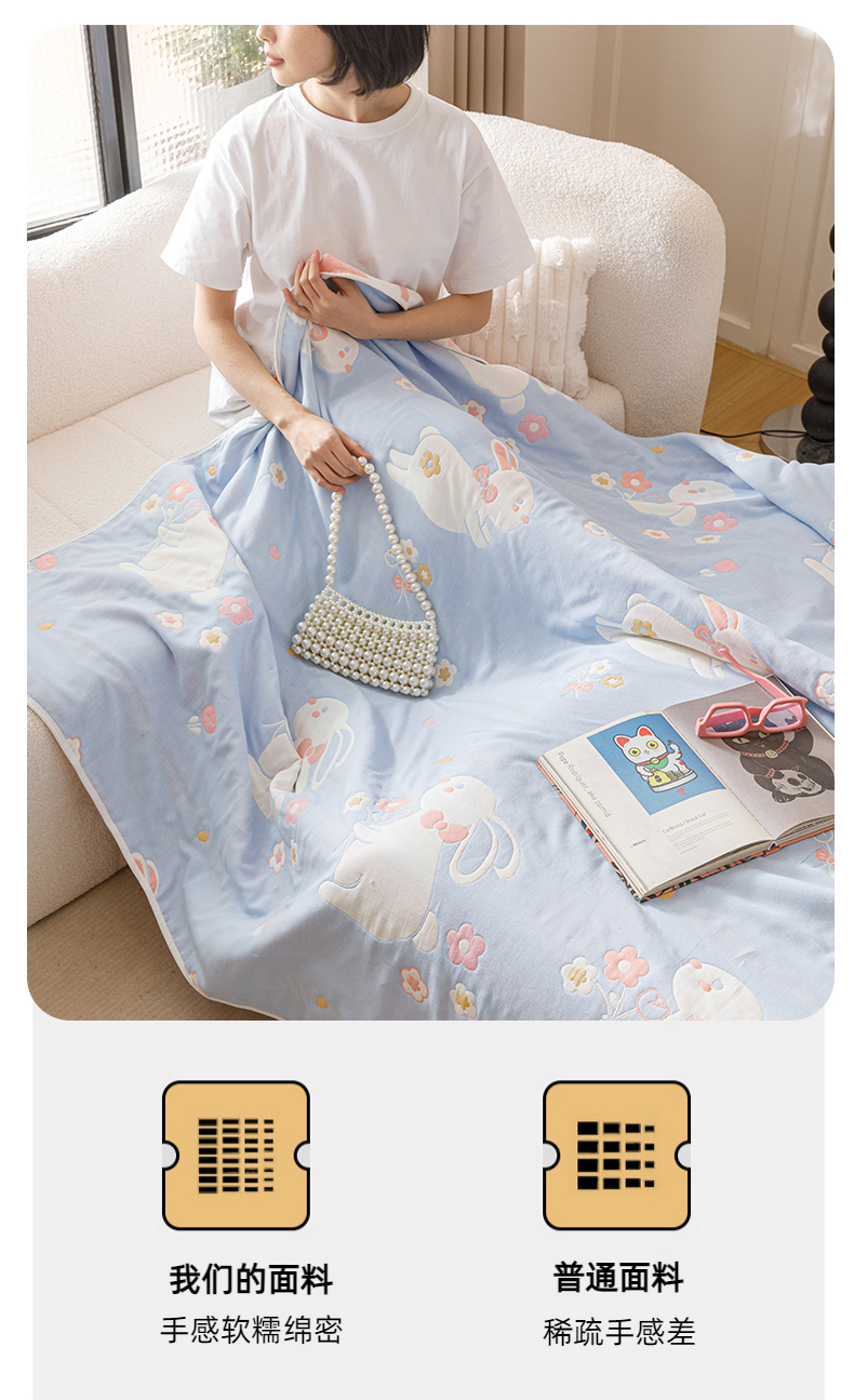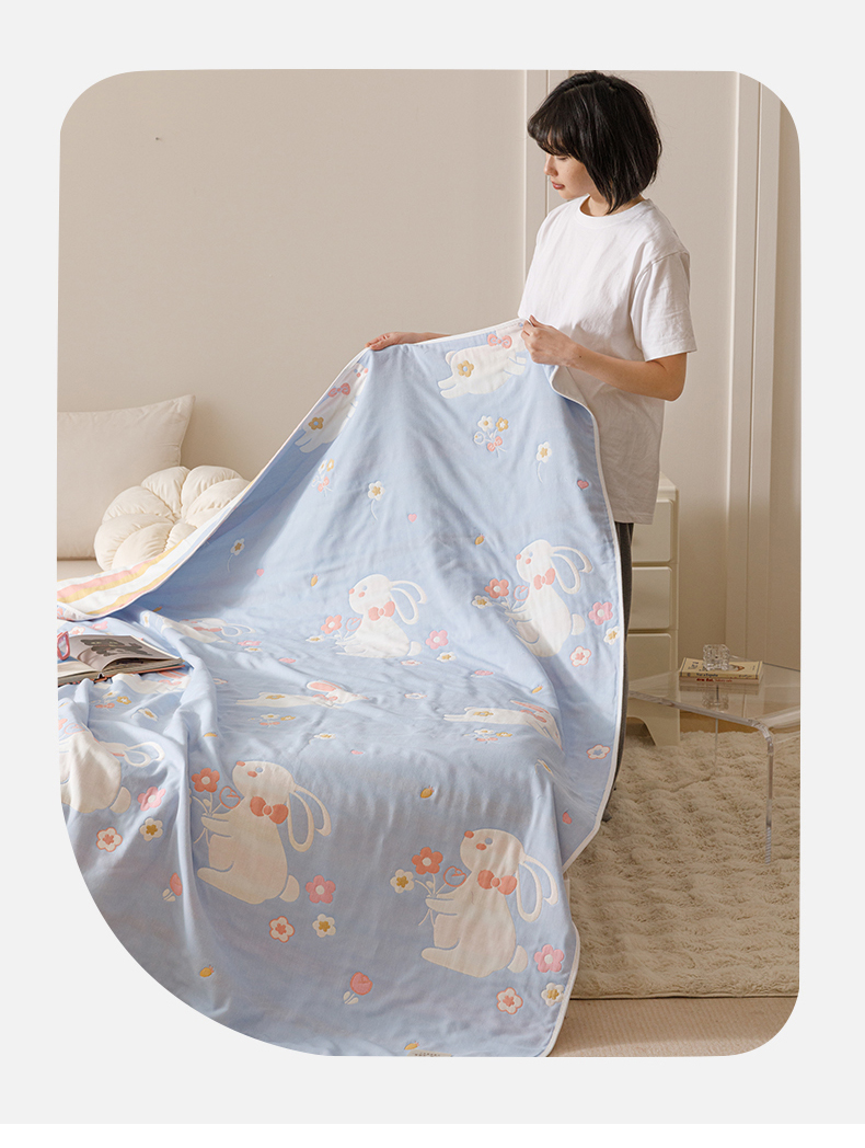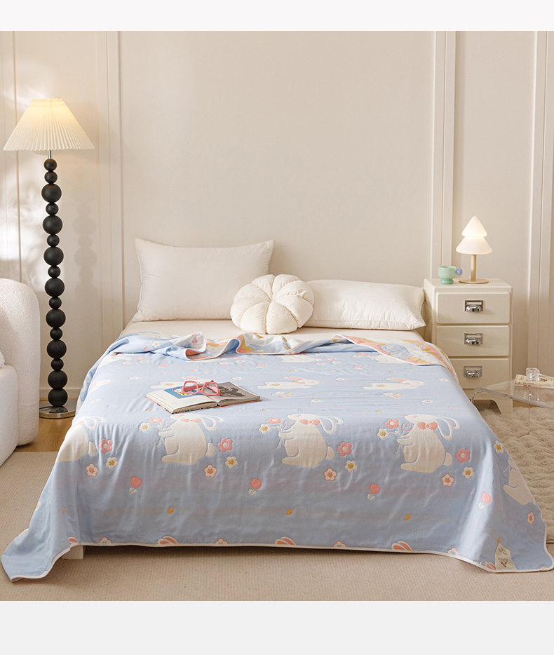 悦然毛巾被 2025新款全棉6层纱毛巾被 花漾捧花蓝