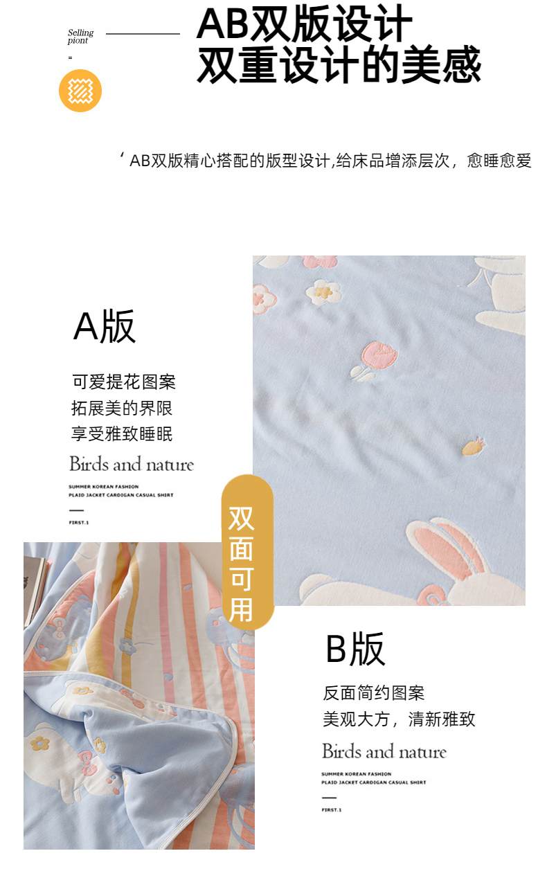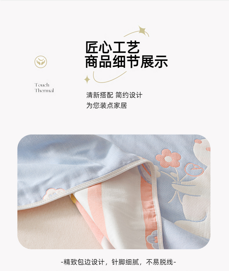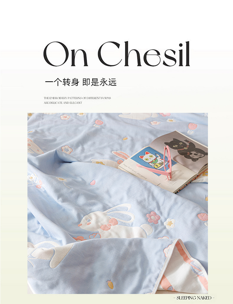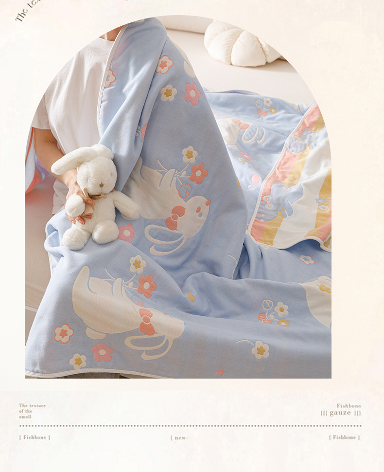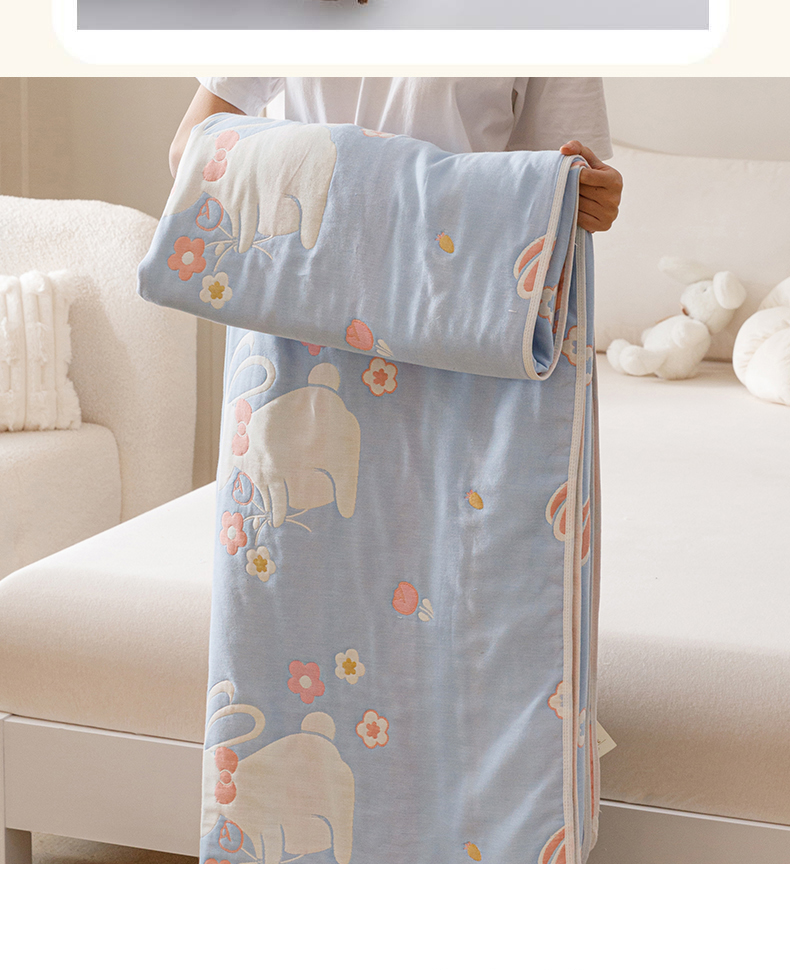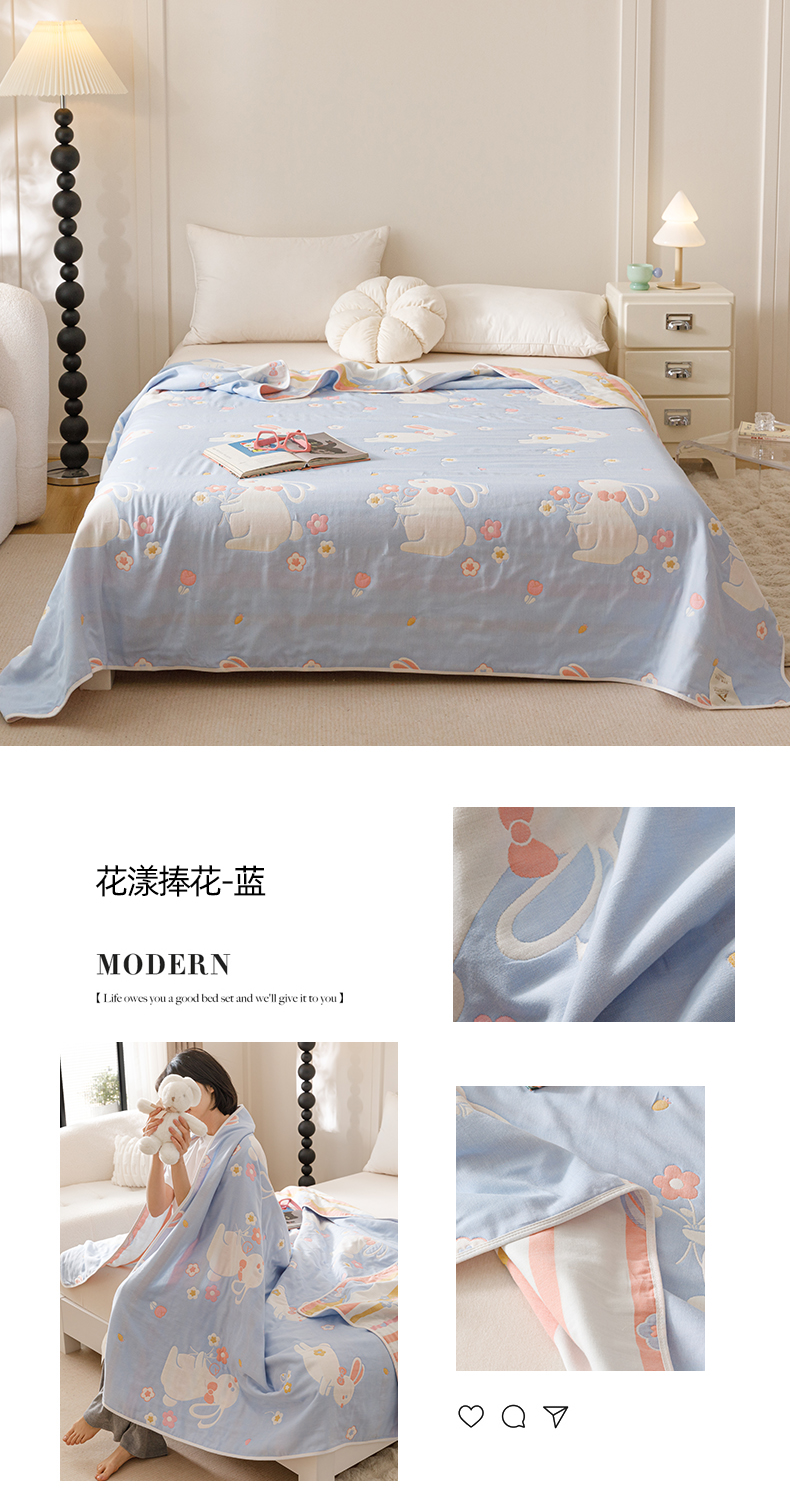 商品名称:悦然毛巾被 2025新款全棉6层纱毛巾被 花漾捧花蓝