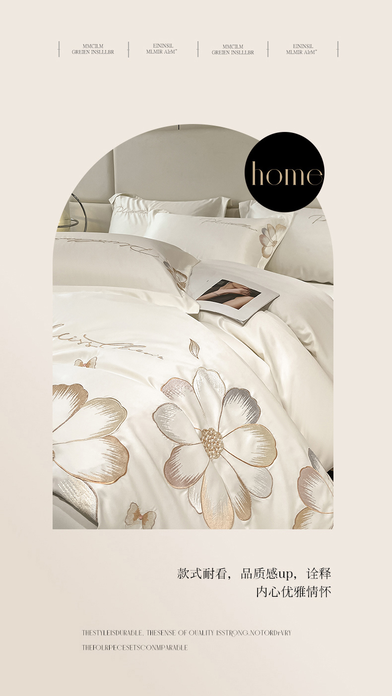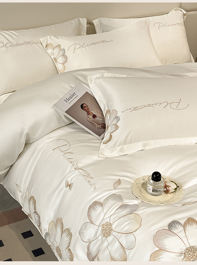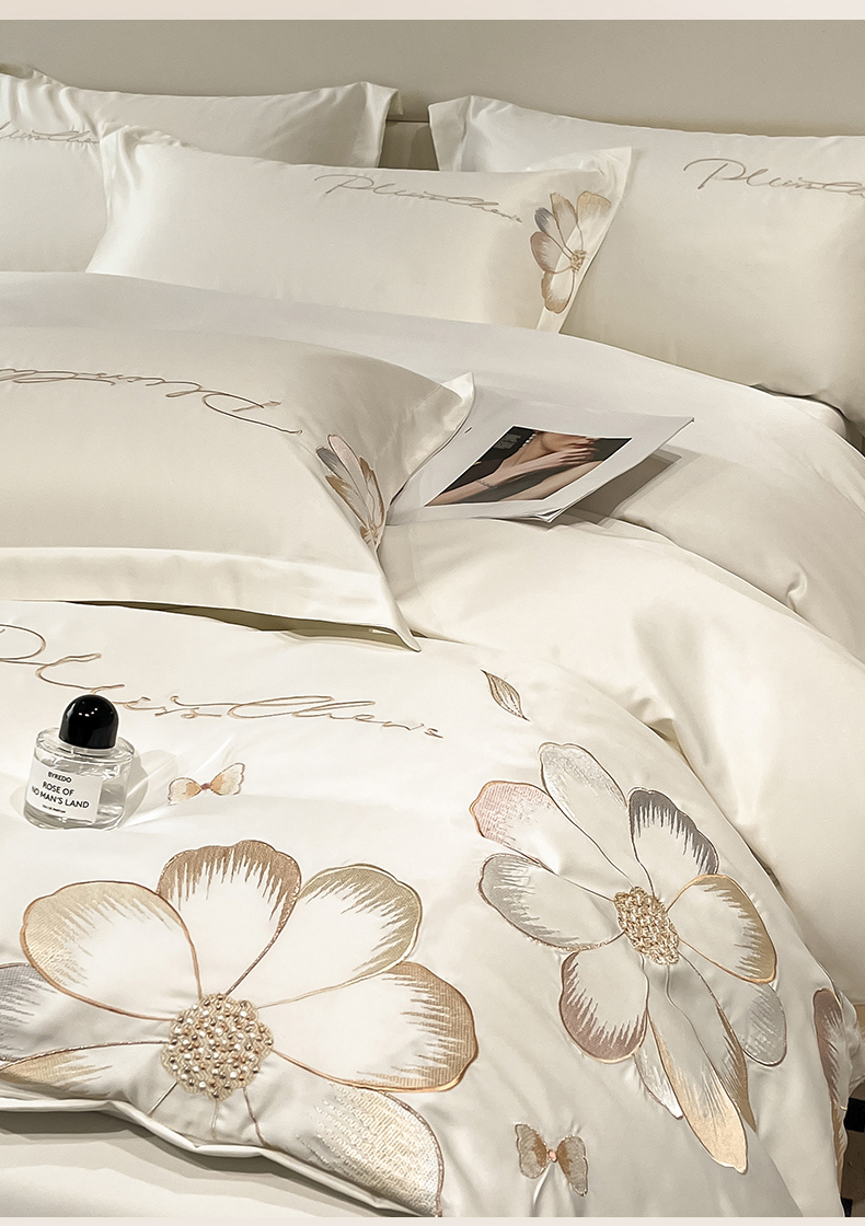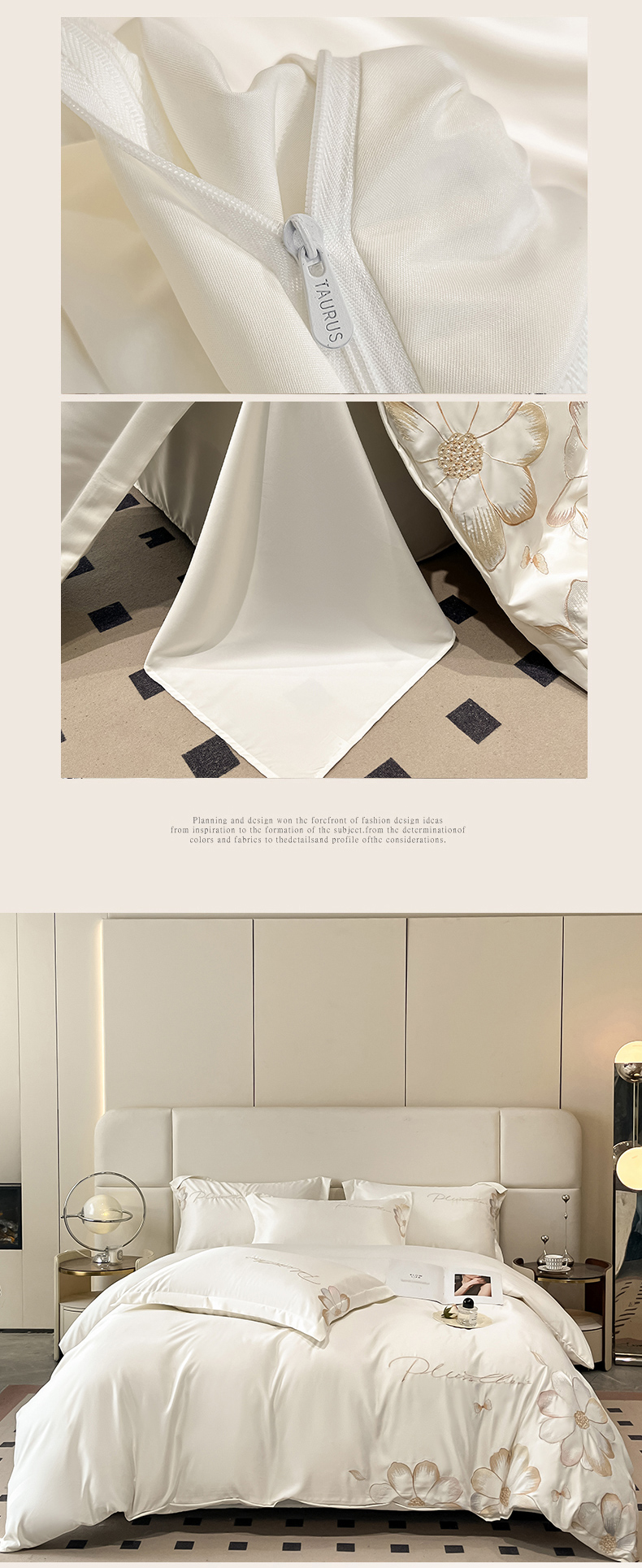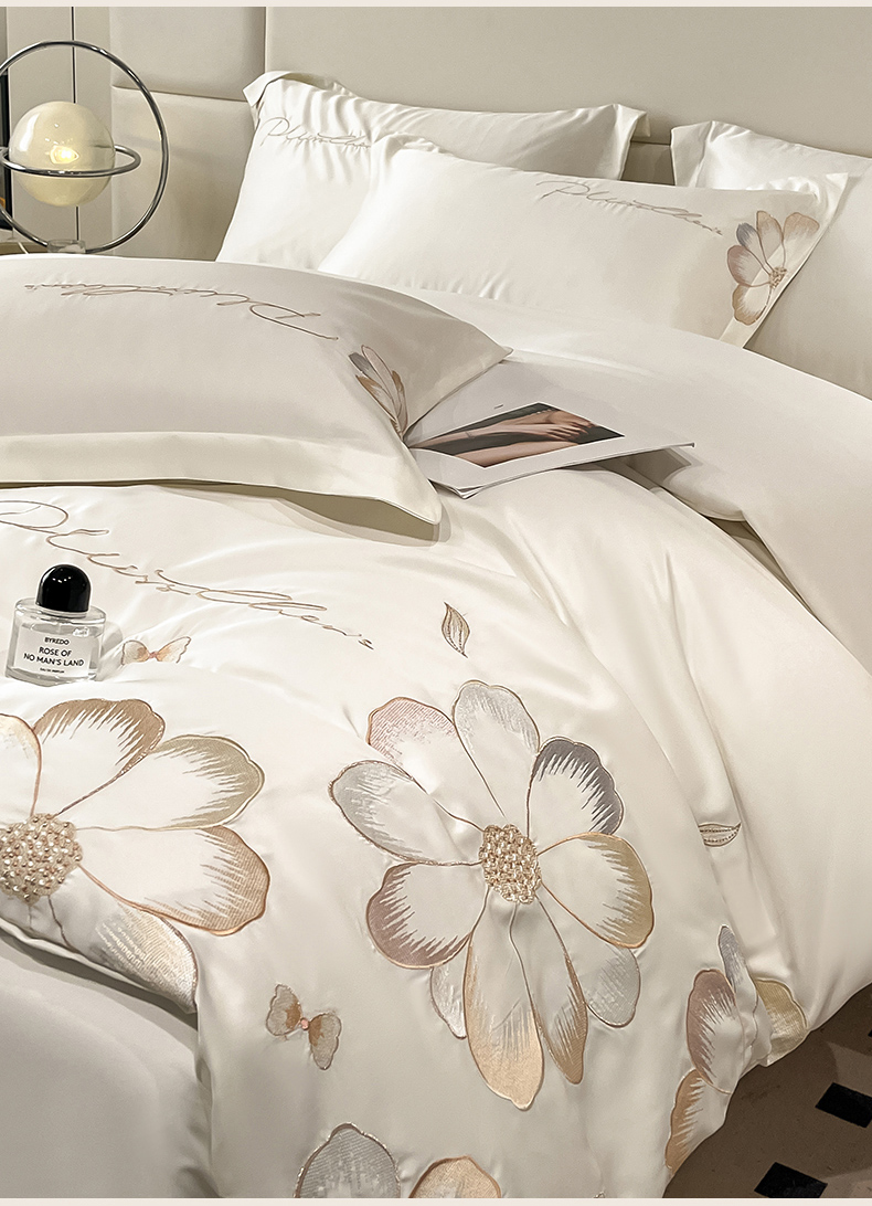 商品名称:金牛座家纺 2025新款重工刺绣亲肤棉四件套-赫本系列 赫本-奶白