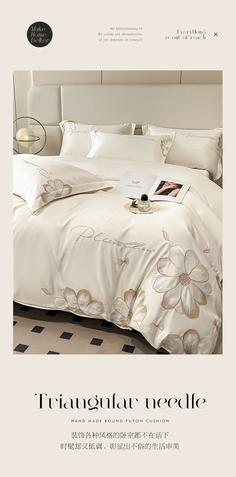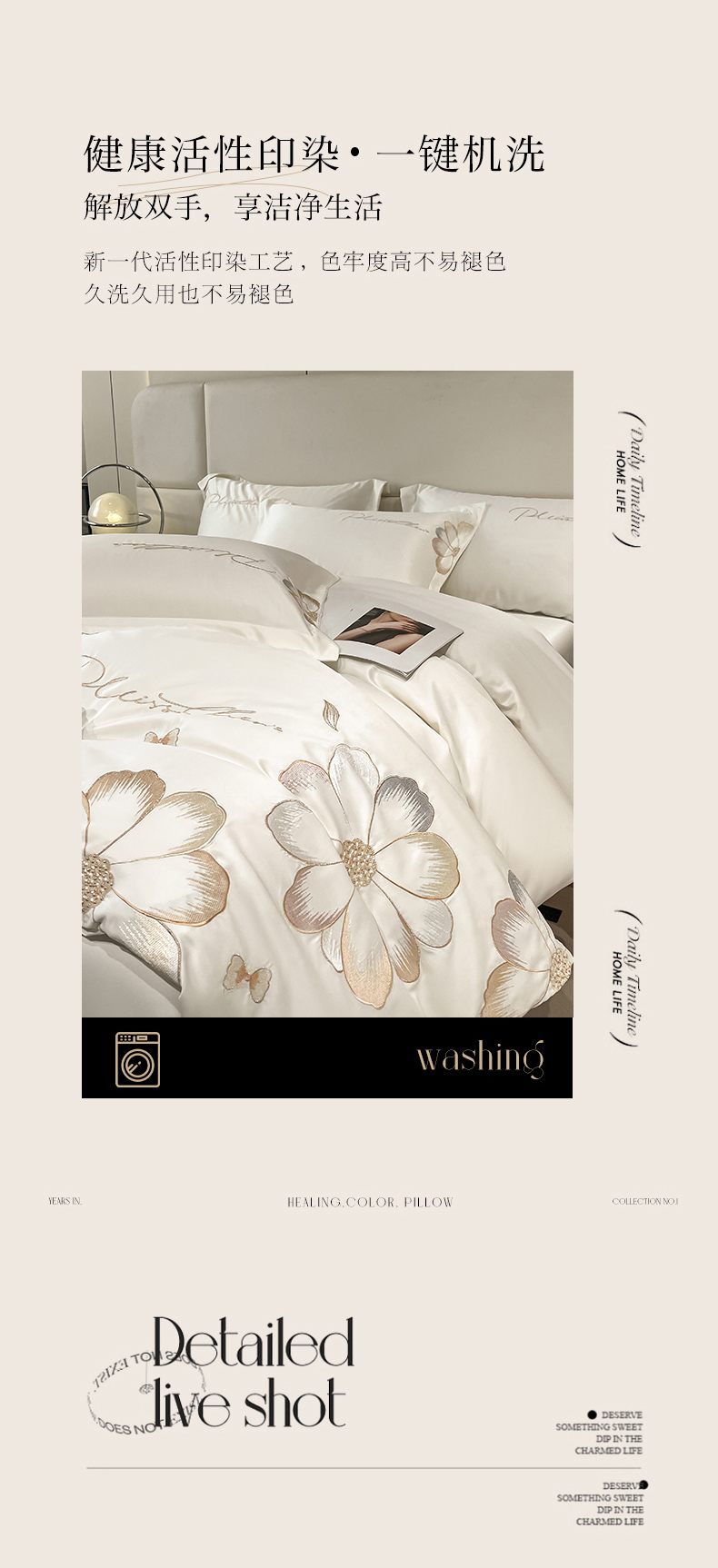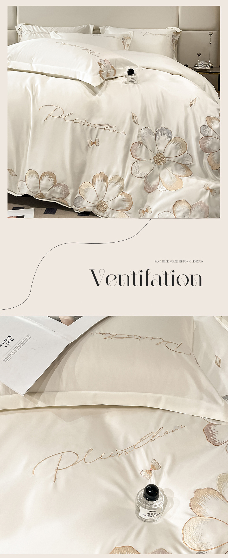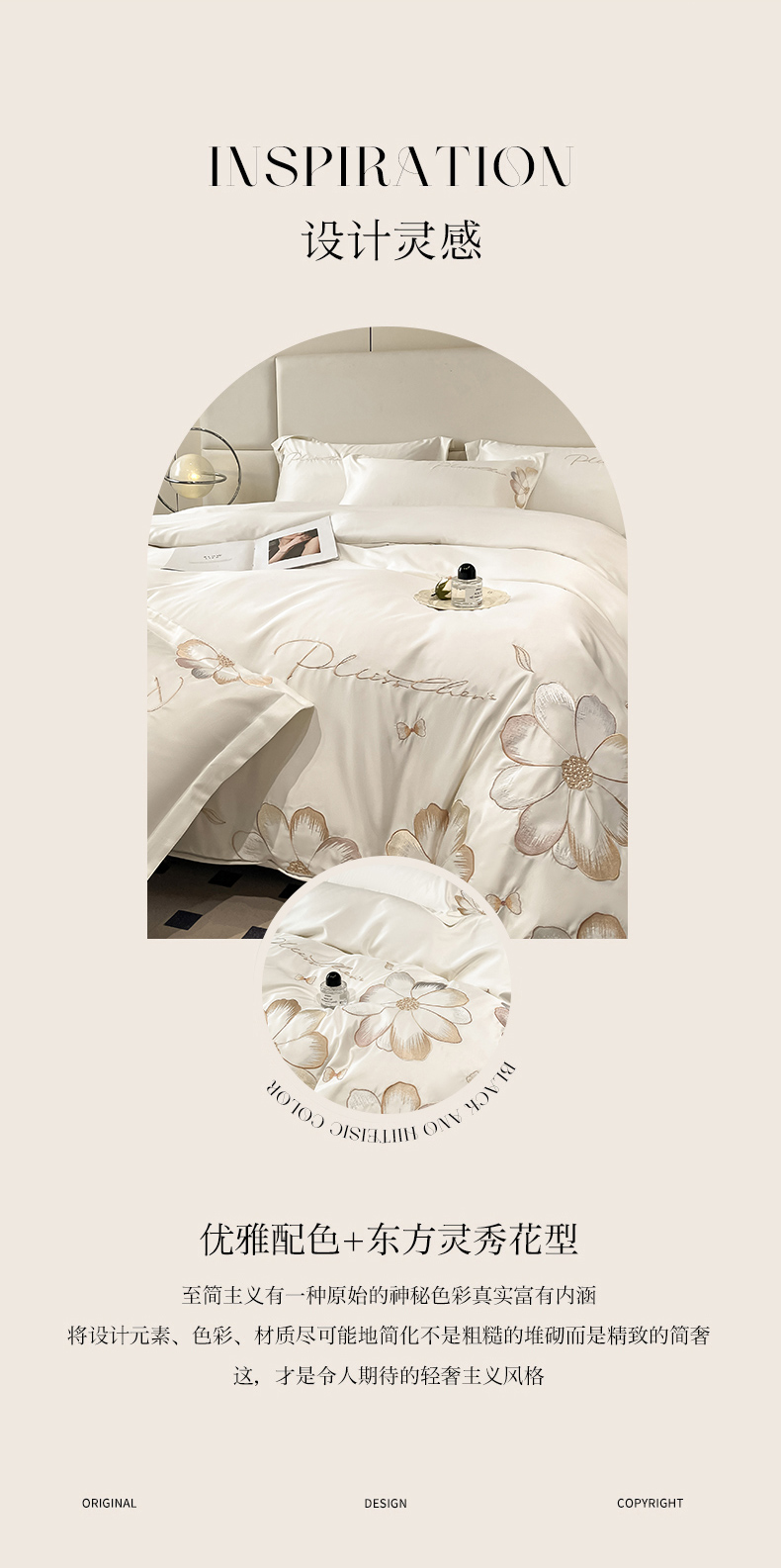 商品名称:金牛座家纺 2025新款重工刺绣亲肤棉四件套-赫本系列 赫本-奶白
