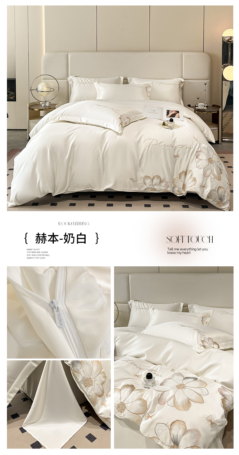 (总)金牛座家纺 2025新款加厚牛奶绒轻奢刺绣四件套-若兰,若兰-杏色,若兰-奶白,若兰-嫩粉,若兰-浅灰,若兰-浅紫