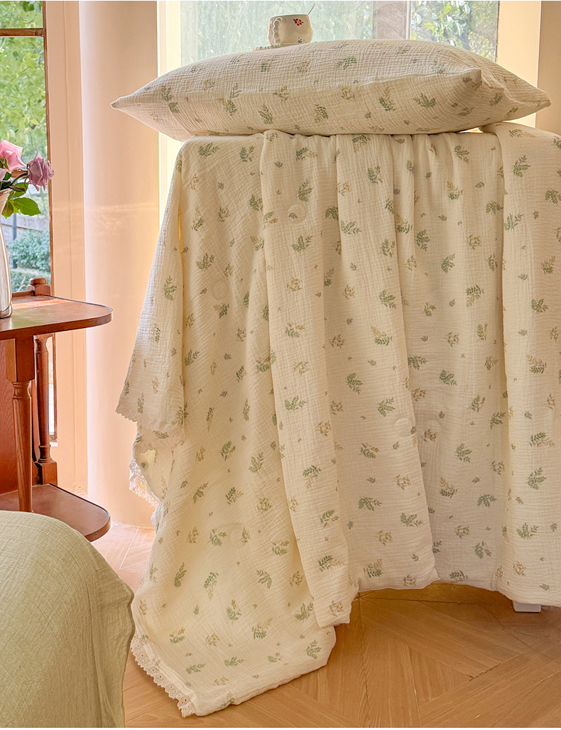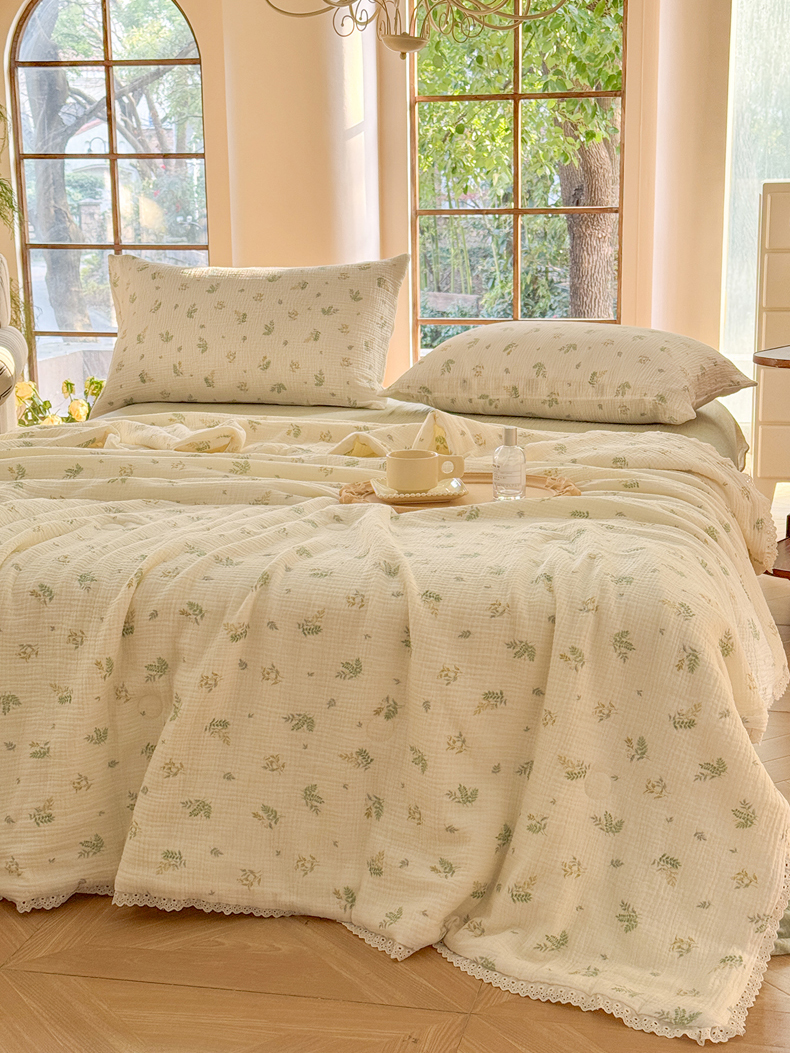 木楌家居2025新款全棉皱皱纱花边款大豆夏被 云笙