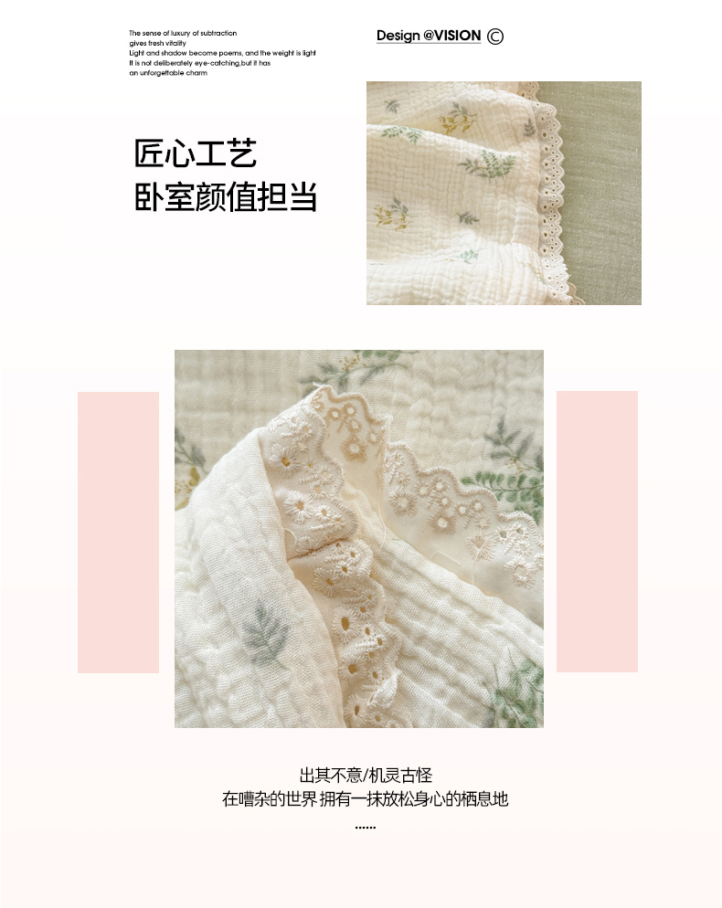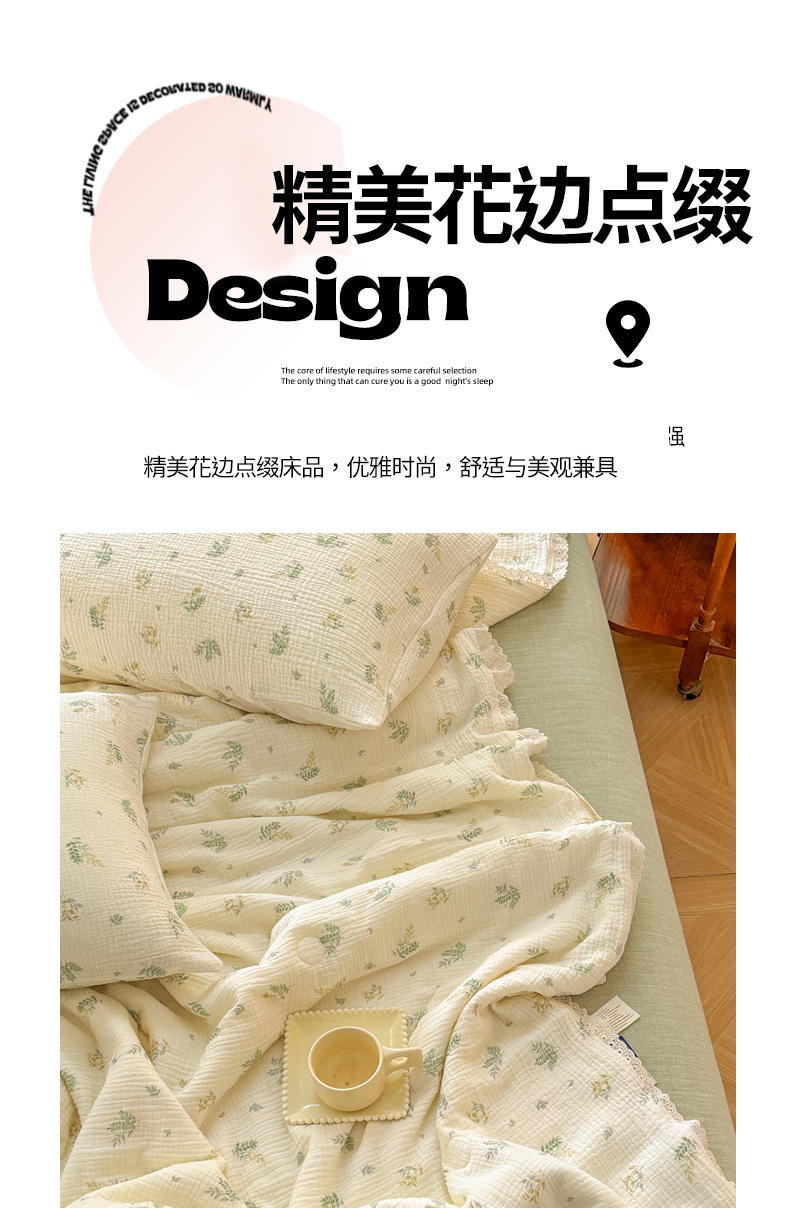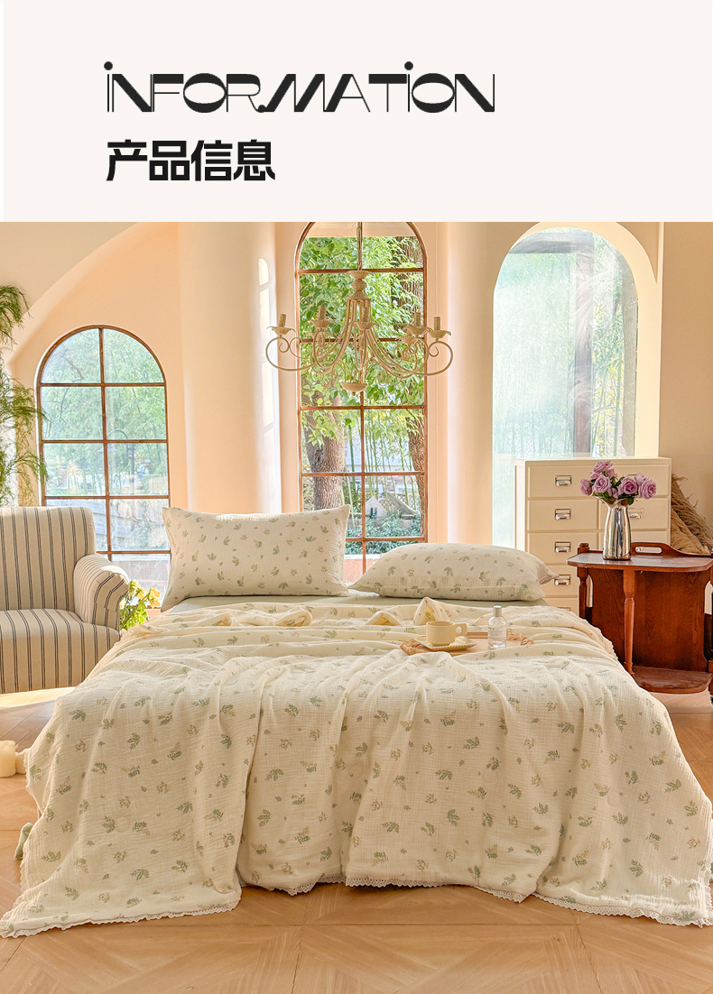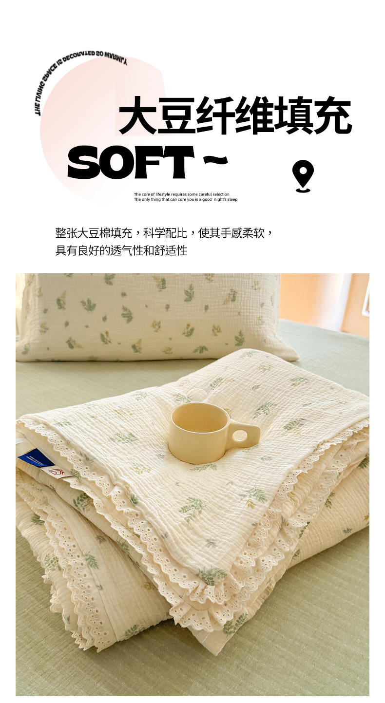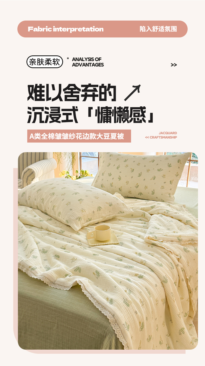 商品名称:木楌家居2025新款全棉皱皱纱花边款大豆夏被 云笙