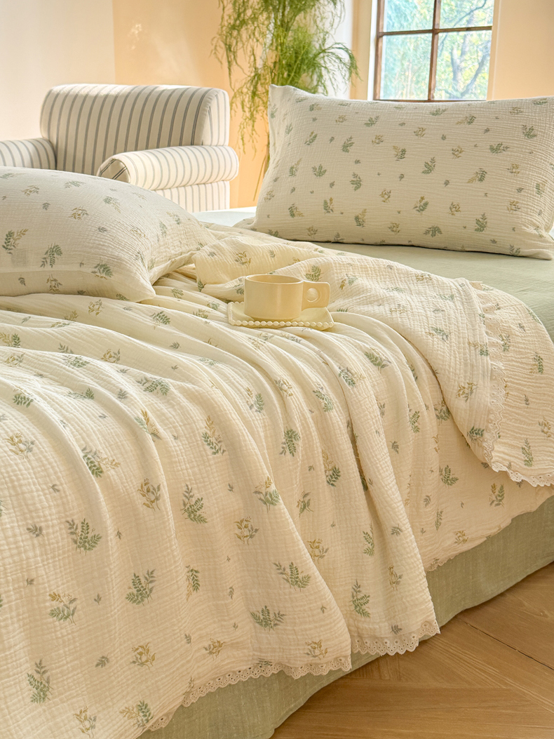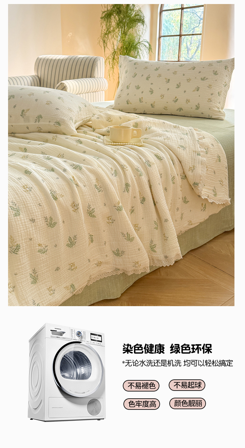木楌 2025新款全棉A类皱皱纱印花四件套 丁香-绿,丁香-绿