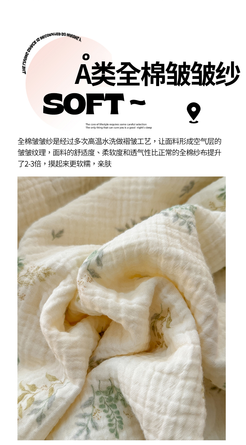 (总)木楌家居 2025新款A类全棉皱皱纱印花四件套,甜心宝贝,薄雾玫瑰,枫林 咖,枫林 绿,可颂,兰亭序,梦蝶,觅森,墨韵,晚棠,小确幸,伊洛娜,云梦泽,半夏 粉,草莓啵啵,初微,可心 兰,可心咖,哈尼,兰菲,黎夏 粉,黎夏 兰,木兰,奶油爱心,宁静,清颜,芮汐,时序 黄,时序 桔蓝,苏潼,西棠,潇湘,星月,悠然,月瑶