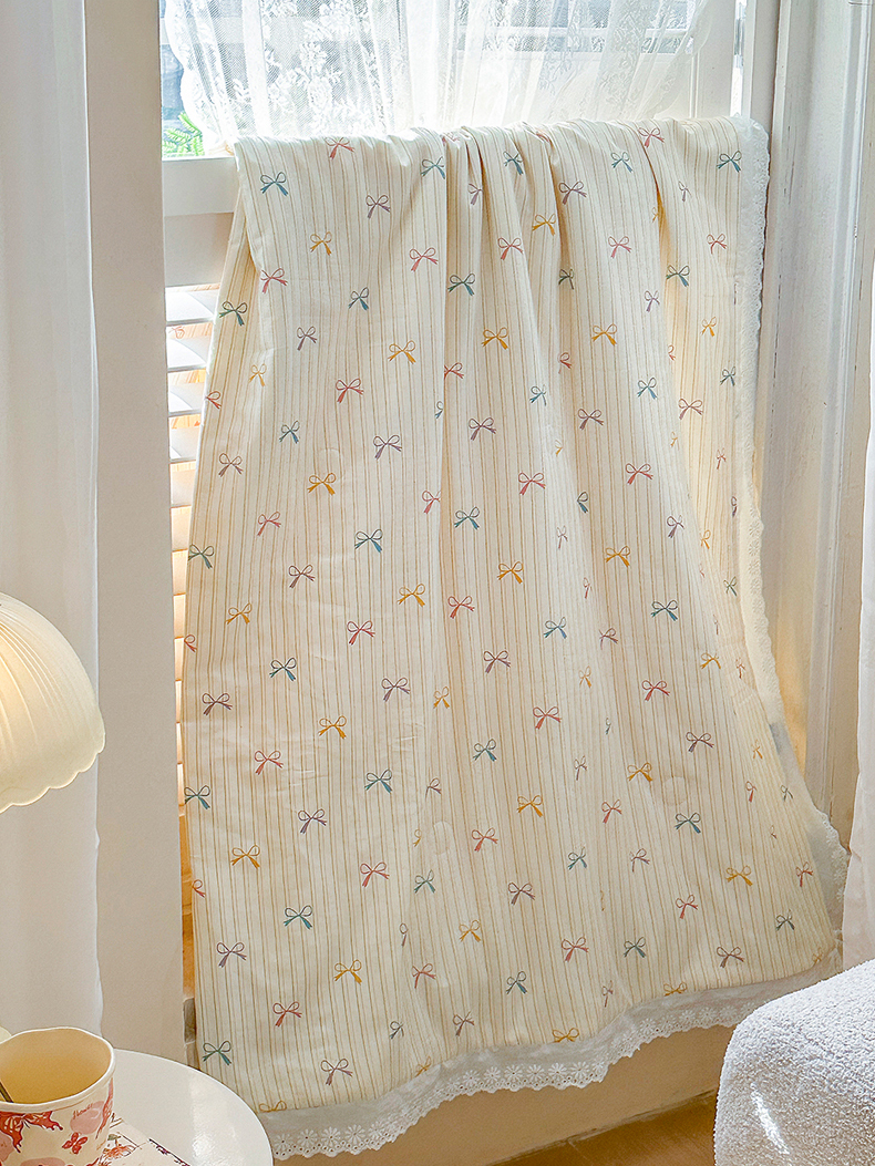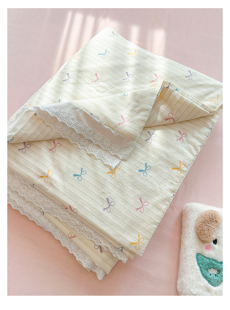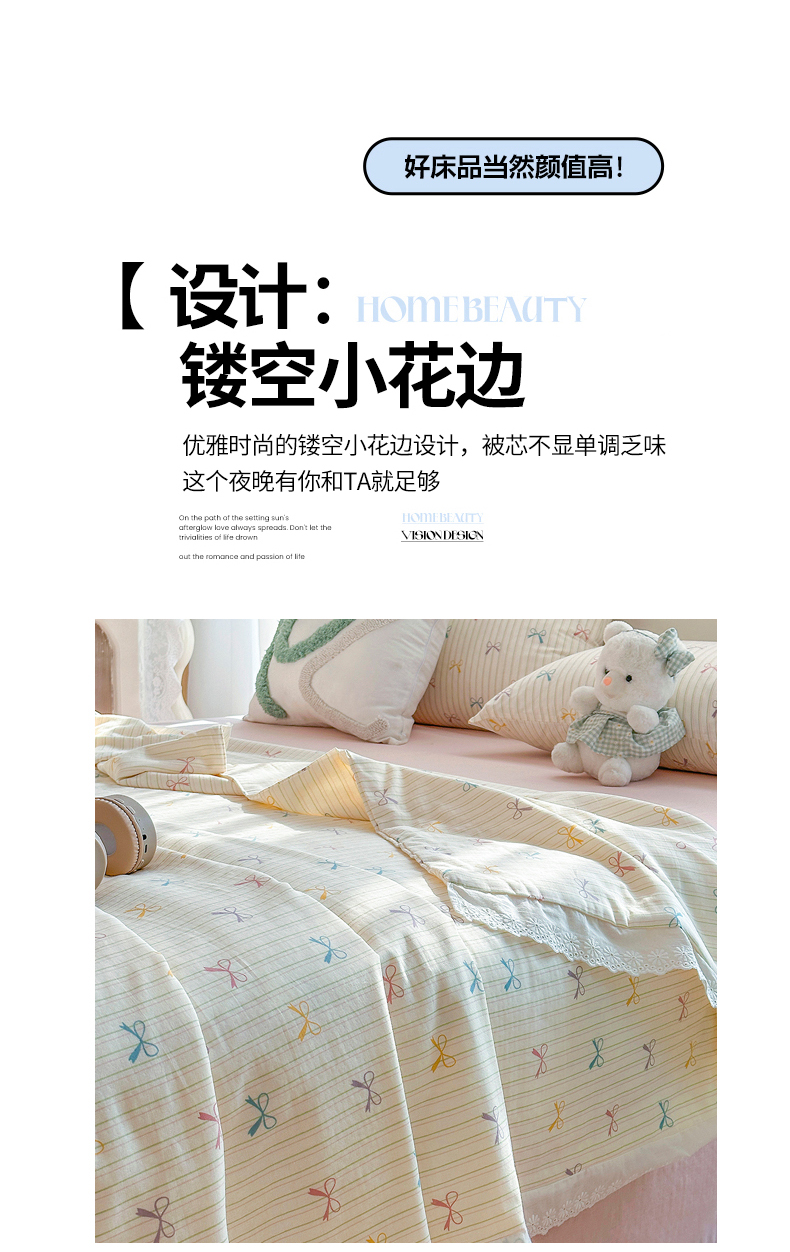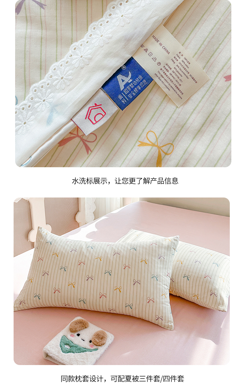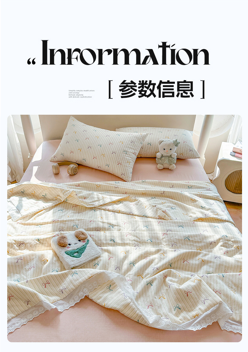(总)木楌 2025年新款双层皱皱纱刺绣款夏被大豆被,蓓蕾,小飞象,蝴蝶结,领结兔,枇杷叶,三叶草,小樱桃,幸运熊